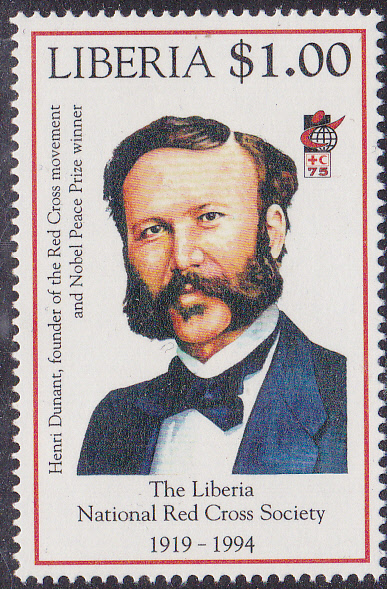 In Liberia erschienen zum Jubiläum "75 Jahre Nationales Rotes Kreuz und Roter Halbmond" in einer Serie auch zwei Marken mit einem Porträt des Friedensnobelpreisträgers Henri Dunant.