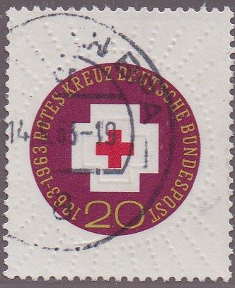 Die Sondermarke der Deutschen Bundespost zum 100-jährigen Bestehen des Internationalen Roten Kreuzes (MiNr. 400) sieht so aus: