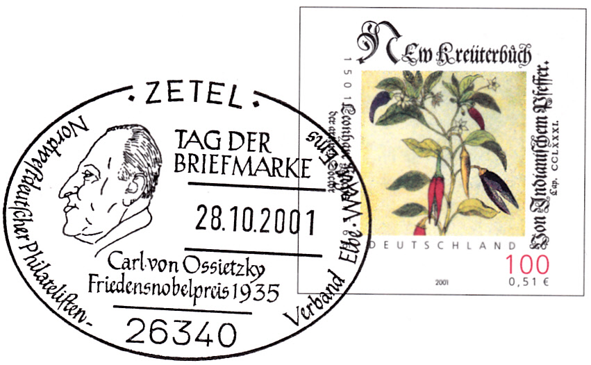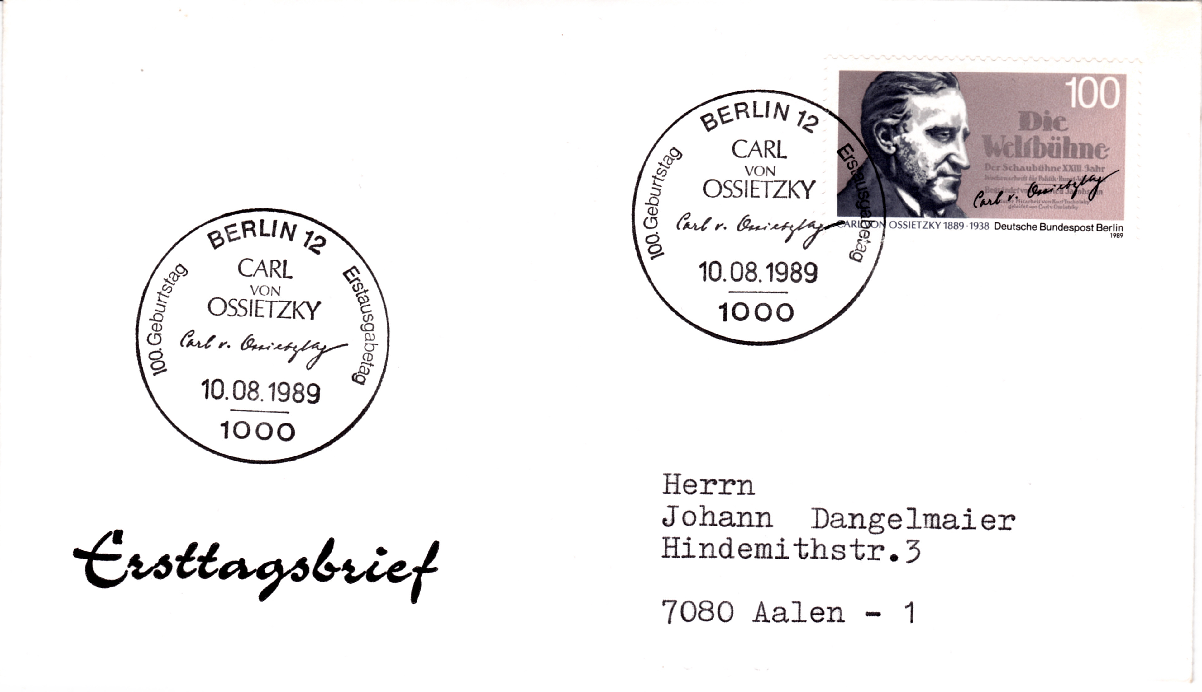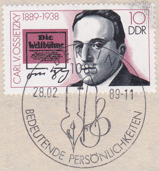In der DDR erschien 1964 in einer Serie "Für den Weltfrieden" auch eine Marke (MiNr 1051) mit dem Porträt von Carl von Ossietzky und dessen Autogramm.