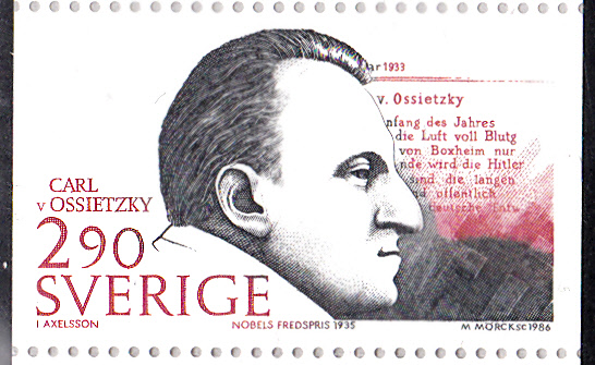 Carl von Ossietzky (geb. 3. Oktober 1889 in Hamburg; gest. 4. Mai 1938 in Berlin) war ein deutscher Journalist, Schriftsteller und Pazifist. Als Herausgeber der Zeitschrift "Die Weltbühne" wurde er im international aufsehenerregenden Weltbühne-Prozess 1931 wegen Spionage verurteilt, weil seine Zeitschrift auf die verbotene Aufrüstung der Reichswehr aufmerksam gemacht hatte. Ossietzky erhielt 1936 rückwirkend den Friedensnobelpreis für das Jahr 1935.