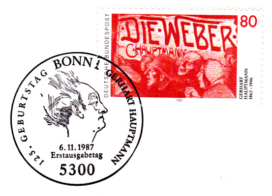 Auf zwei Marken der Freimarkenserie von 1948 der Sowjetischen Besatzungszone MiNr 213 (6Pf) und MiNr 223 (40Pf) ist ein Porträt von Gerhart Hauptmann zu sehen. Die beiden Werte gibt es auch noch mit anderem Wasserzeichen aus der DDR (MiNr. 328 und MiNr 336) aus dem dem Jahre 1952.