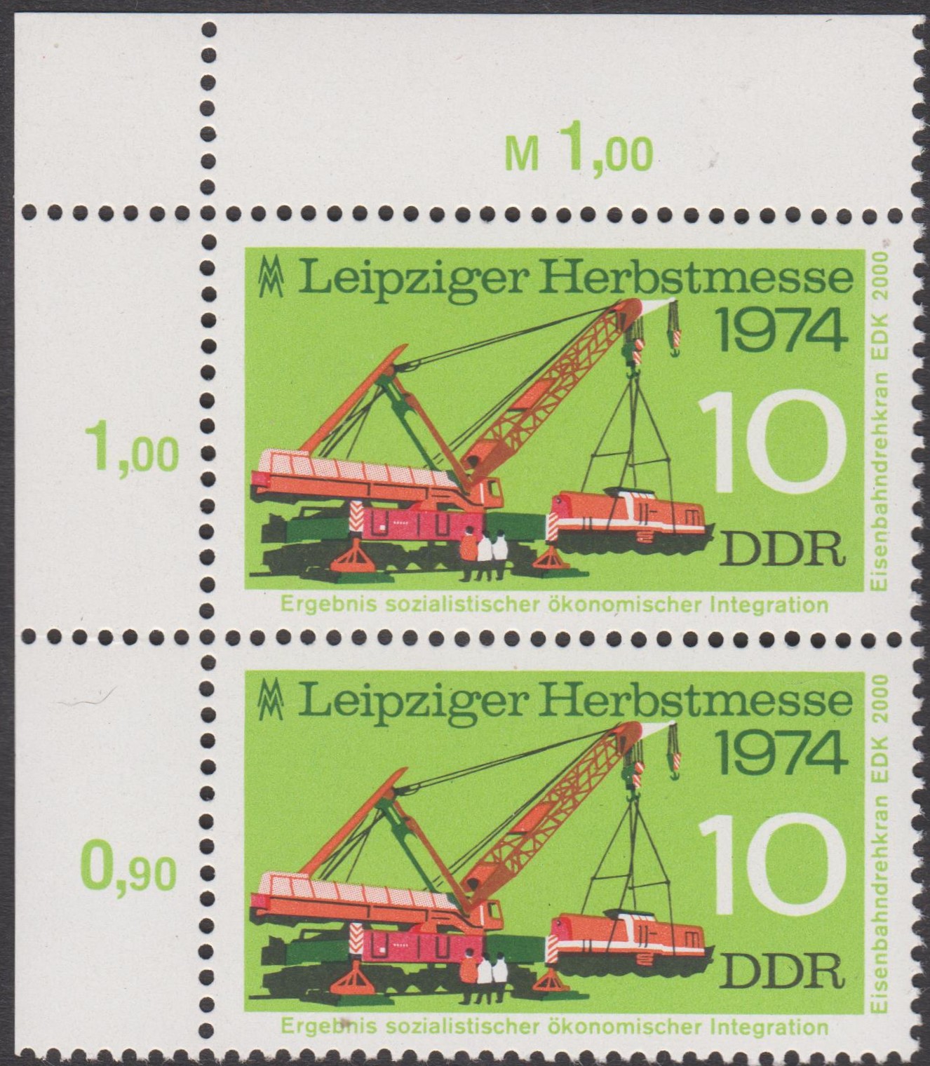 DDR MiNr. 1973 zeigt einen EDK 2000; hier eine Eckrandstück aus der linken oberen Bogenecke: