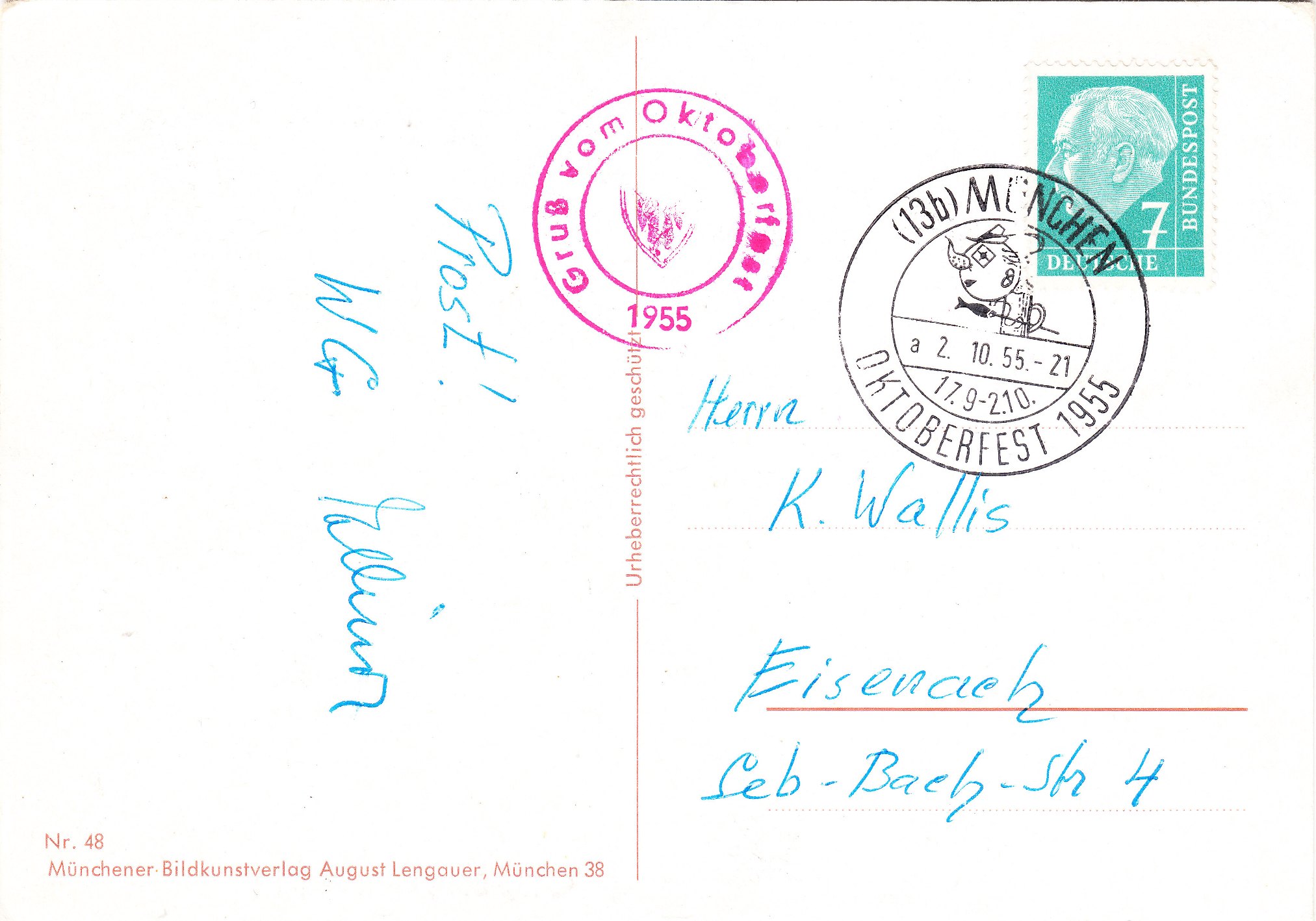 Den Anfang macht diese Ansichtskarte vom 02.10.1955 als letztem Tag des Oktoberfestes im Jahre 1955: