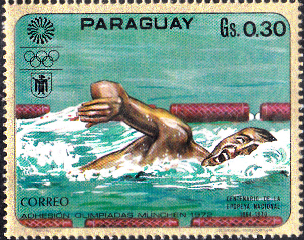 Aus der Dominikanischen Republik kommt diese Marke (MiNr 664 A) mit Murray Rose (1939 - 2012), Australien), Olympiasieger von 1956 über 400 m und 1500 m Freistil und mit der 4×200 m Freistilstaffel.