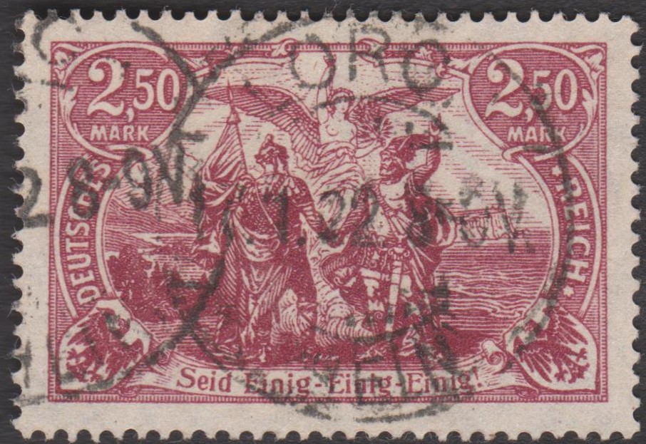Das Postwertzeichen Deutsches Reich MiNr. 115 stellt die Vereinigung von Nord- und Süddeutschland dar. Ein weiteres Motiv auf dieser Briefmarke ist ein "Genius mit Fackel":