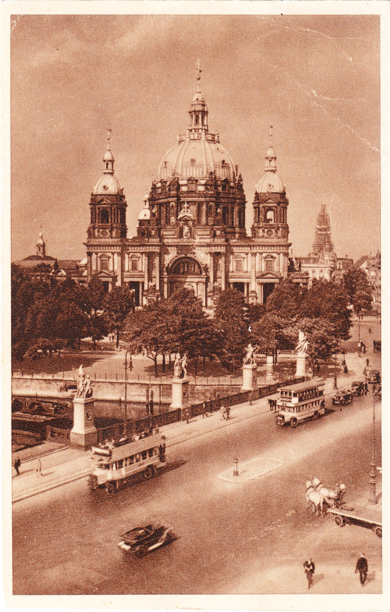 Hier ein Exemplar mit Wertstempel und "Bild 79: Berliner Dom", gebraucht am 28.10.1935 in Berlin: