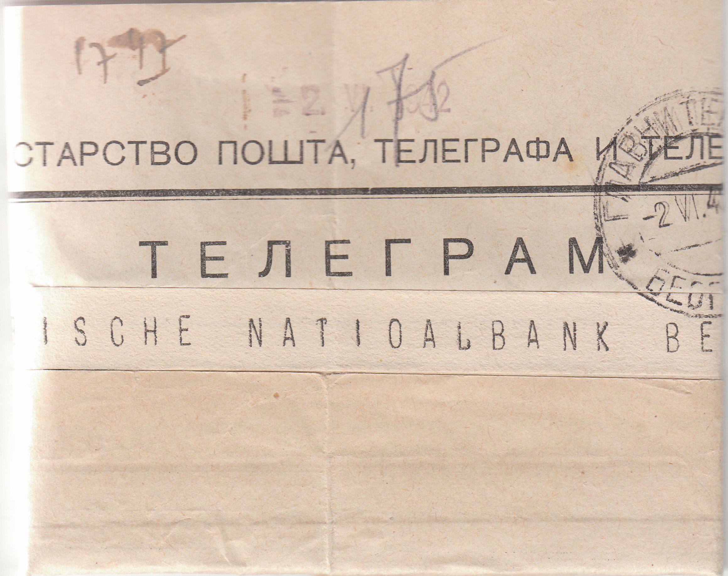Hier ein weiteres solches Telegramm, in Belgrad angekommen am 02.06.1942: