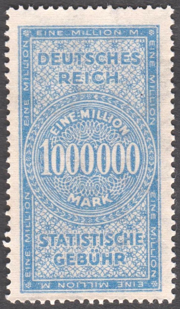 Gebührenmarke des Deutschen Reiches mit der Inschrift DEUTSCHES REICH STATISTISCHE GEBÜHR, Wertstufe EINE MILLION MARK:
