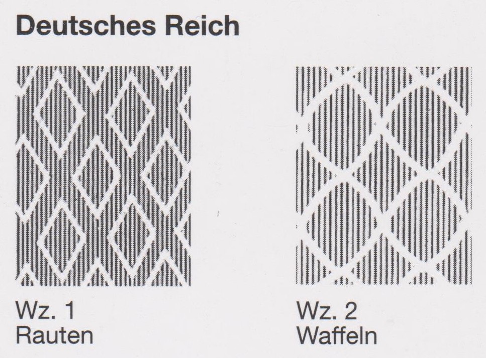 Diese Postwertzeichen wurden zunächst auf Papier mit dem Wasserzeichen Rauten und später auch auf Papier mit dem Wasserzeichen Waffeln gedruckt.