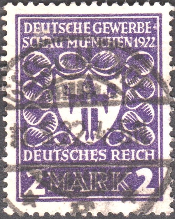 Deutsches Reich MiNr. 199 bis 204 erschienen am 02.04.1922 aus dem Anlaß "Deutsche Gewerbeschau Müchen" und zeigen das Münchner Stadtwappen.