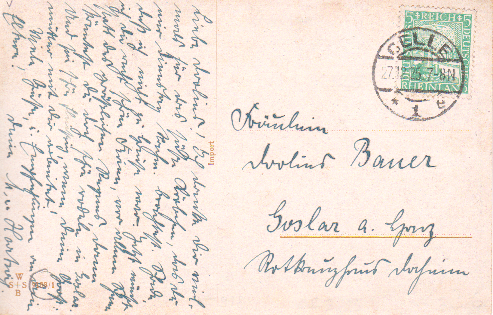Einzelfrankatur Deutsches Reich MiNr. 372 am 27.12.1925 portogerecht auf Postkarte im Fernverkehr: