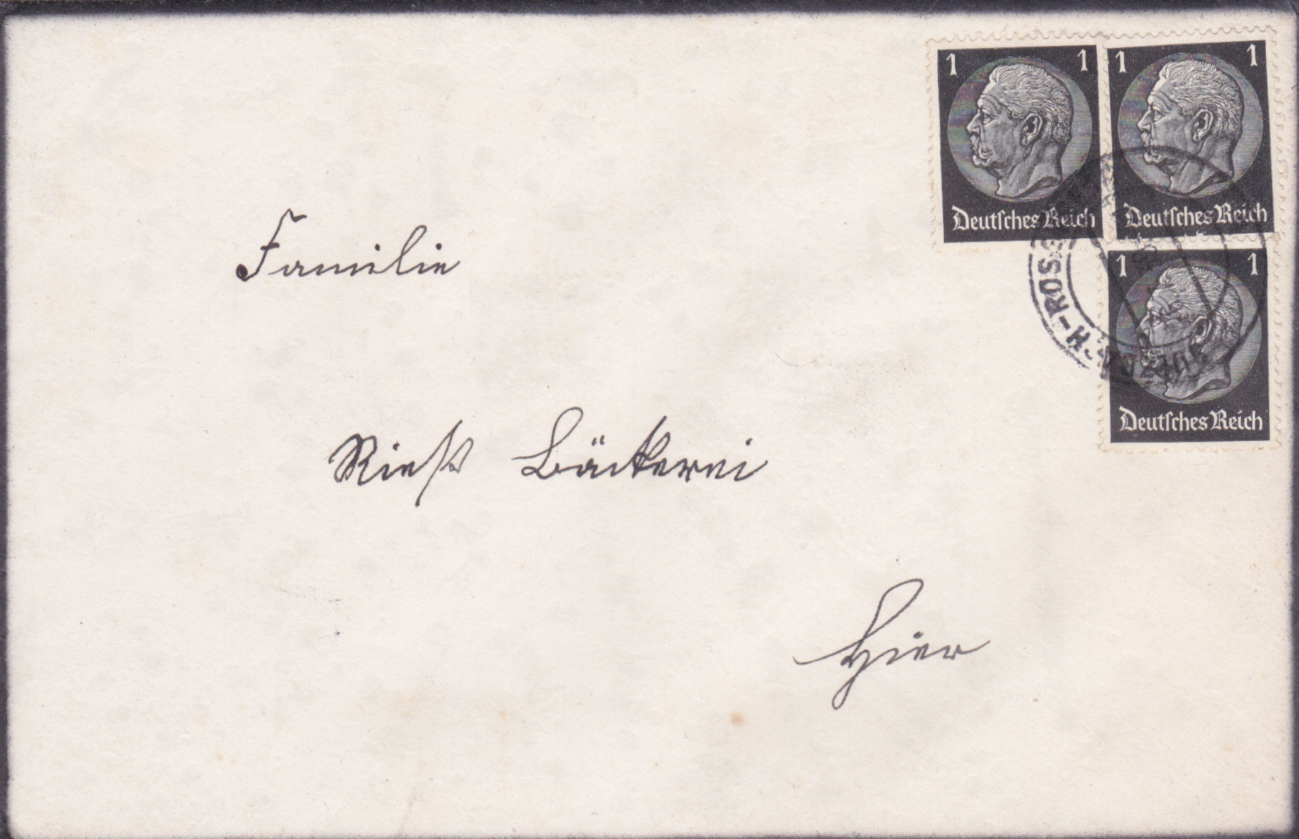 Trauerbrief als Drucksache vom 26.7.1939 portogerecht als Mehrfachfrankatur der Marke zu 1Pf Hindenburg (MiNr 512).