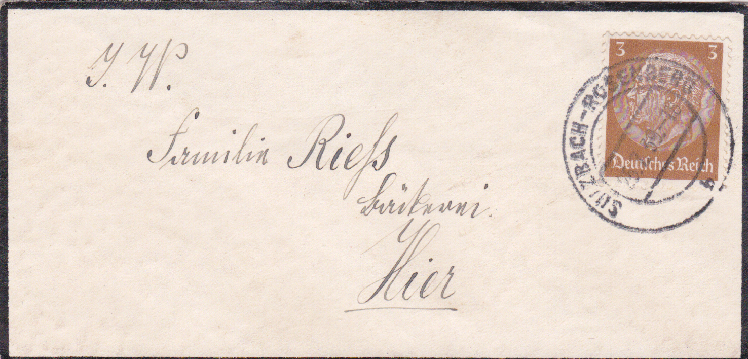 Trauerbrief als Drucksache vom 25.7.1939 portogerecht als Einzelfrankatur der Marke zu 3Pf Hindenburg (MiNr 513).