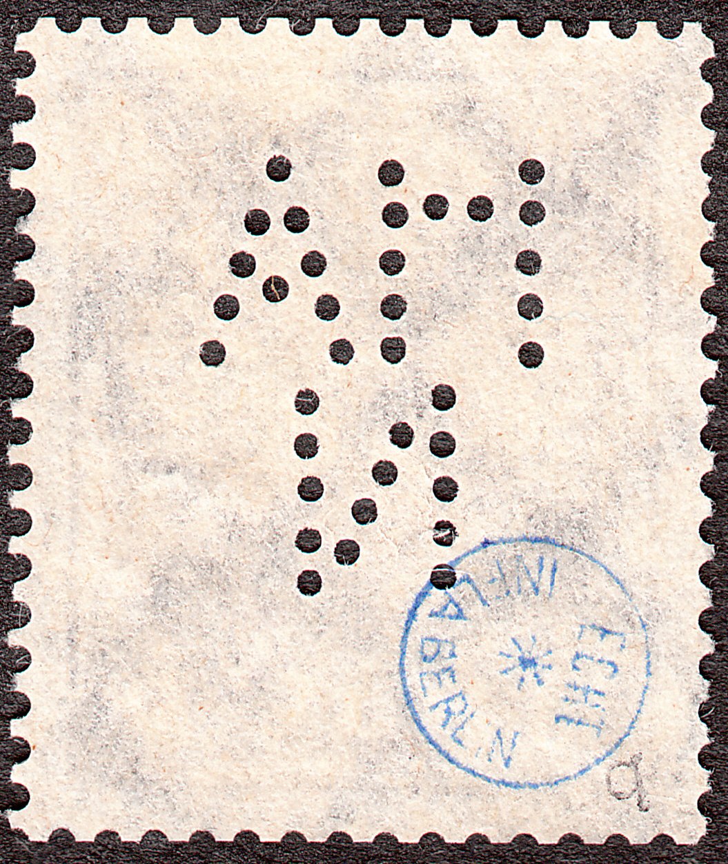 Die Marke in der Farbe "a" zeigt eine Firmenlochung "AEG" = Allgemeine Elektricitäts-Gesellschaft und wurde dementsprechend in BERLIN gestempelt.