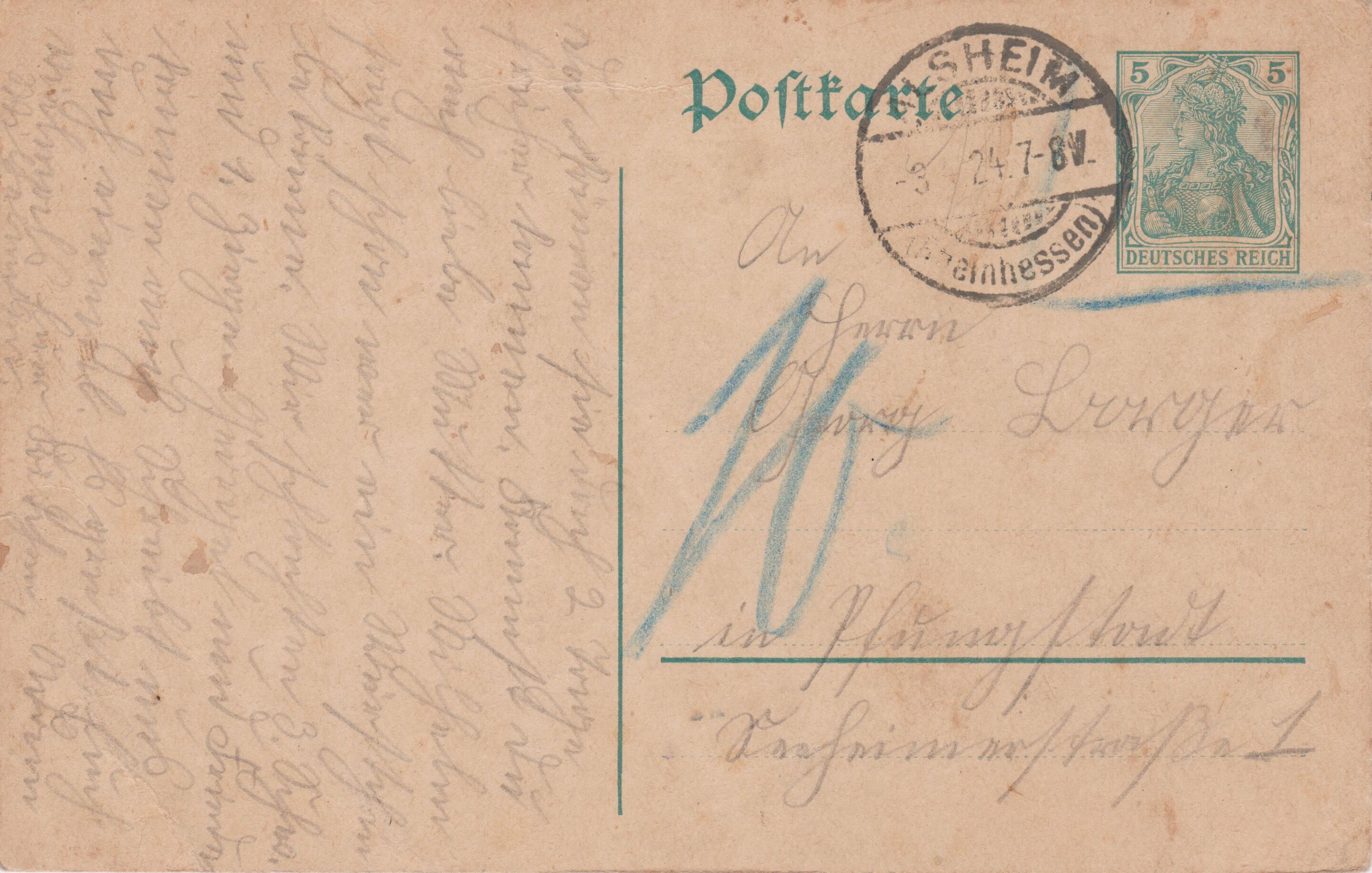 1908 wurde wegen der Erhöhung des ermäßigten Ortsportos in Württemberg von 2 Pfennig auf 3 Pfennig bei bisherigen Postkarten des Deeutschen Reiches zu 2 Pfennig der Wertstempel Germania durchbalkt und ein neuer Wertstempel Germania zu 3 Pfennig zugedruckt.
