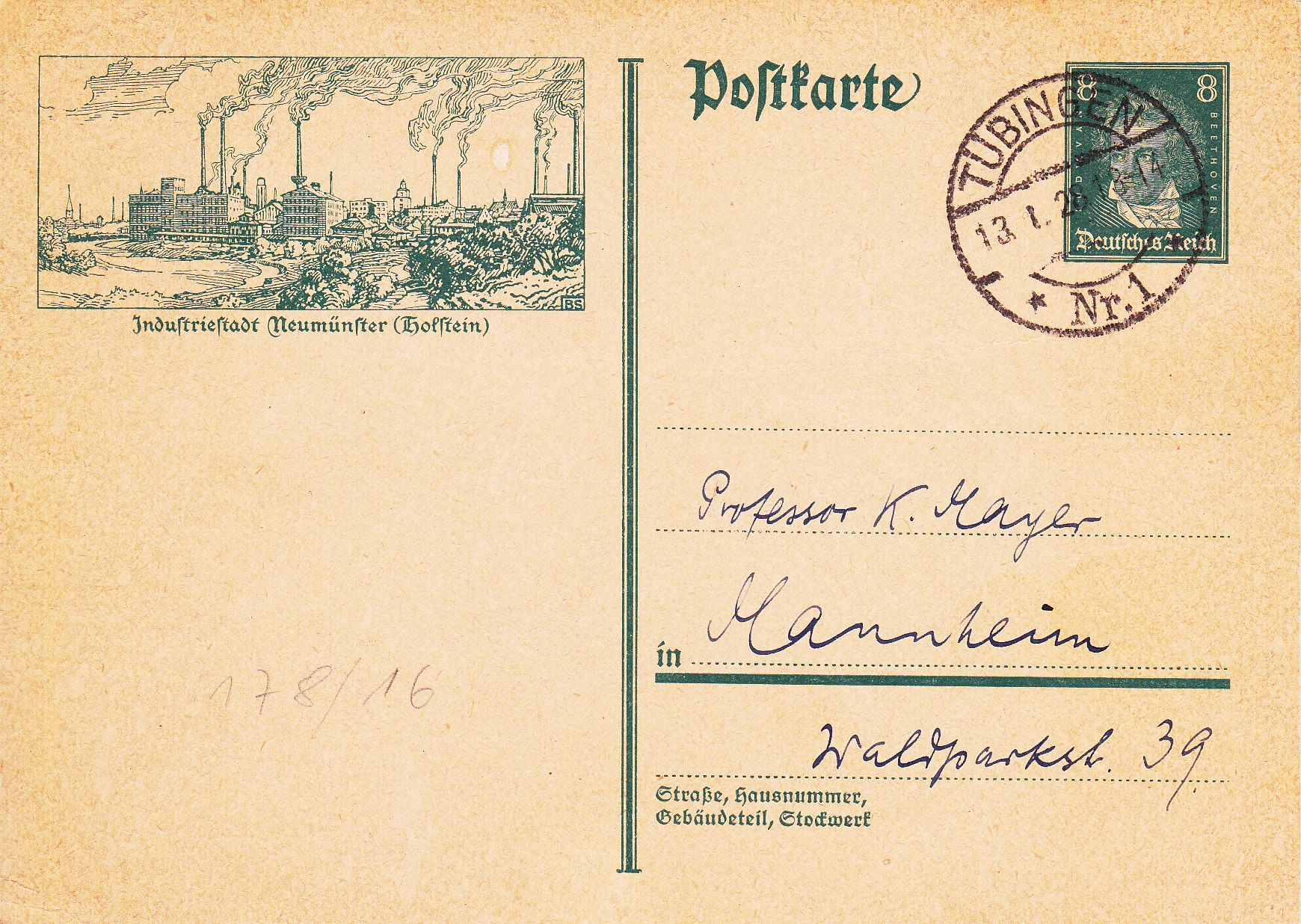 Die nächste Karte (MiNr P 178/16) zeigt eine Abbildung aus der Industriestadt Neumünster (Holstein).