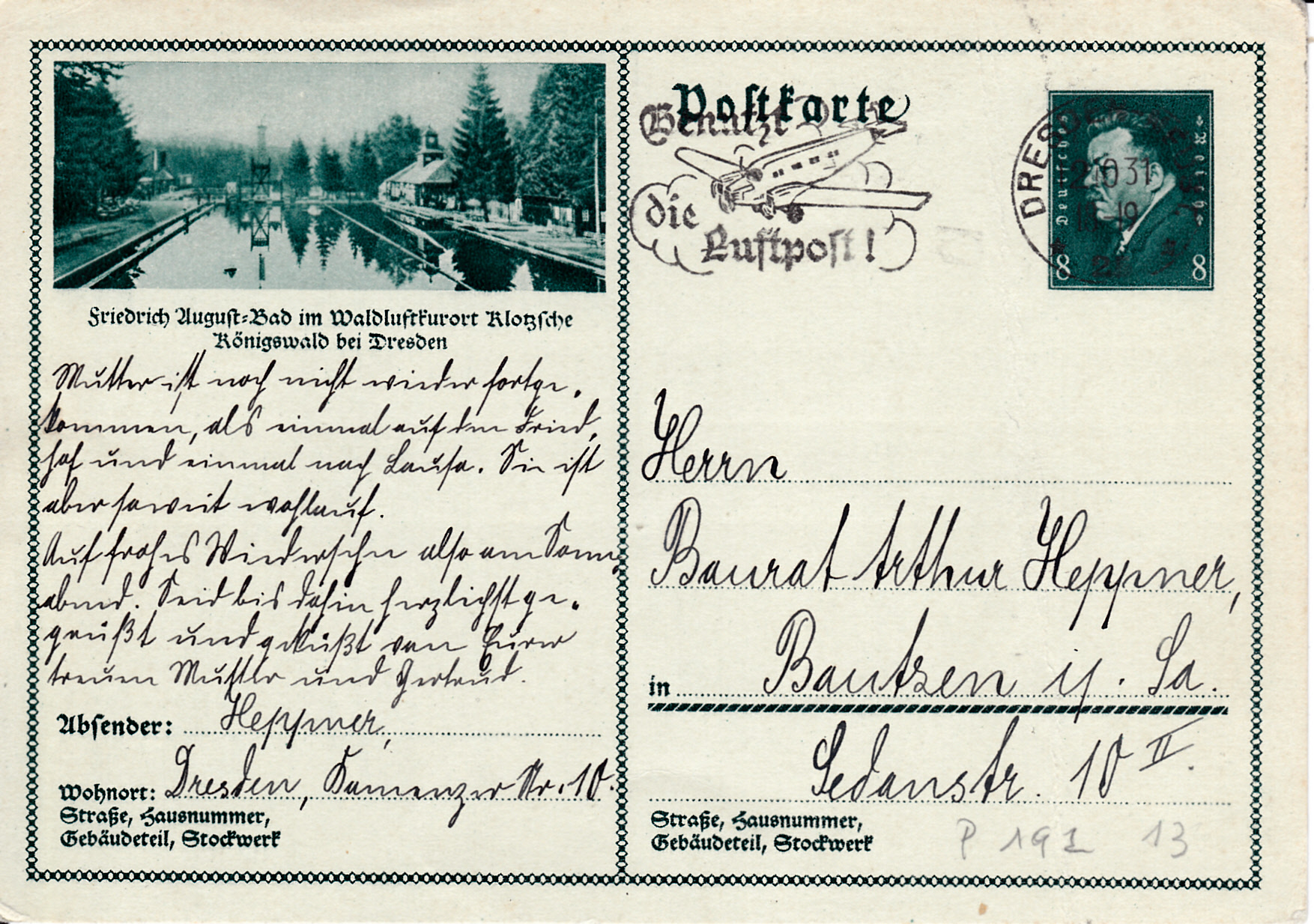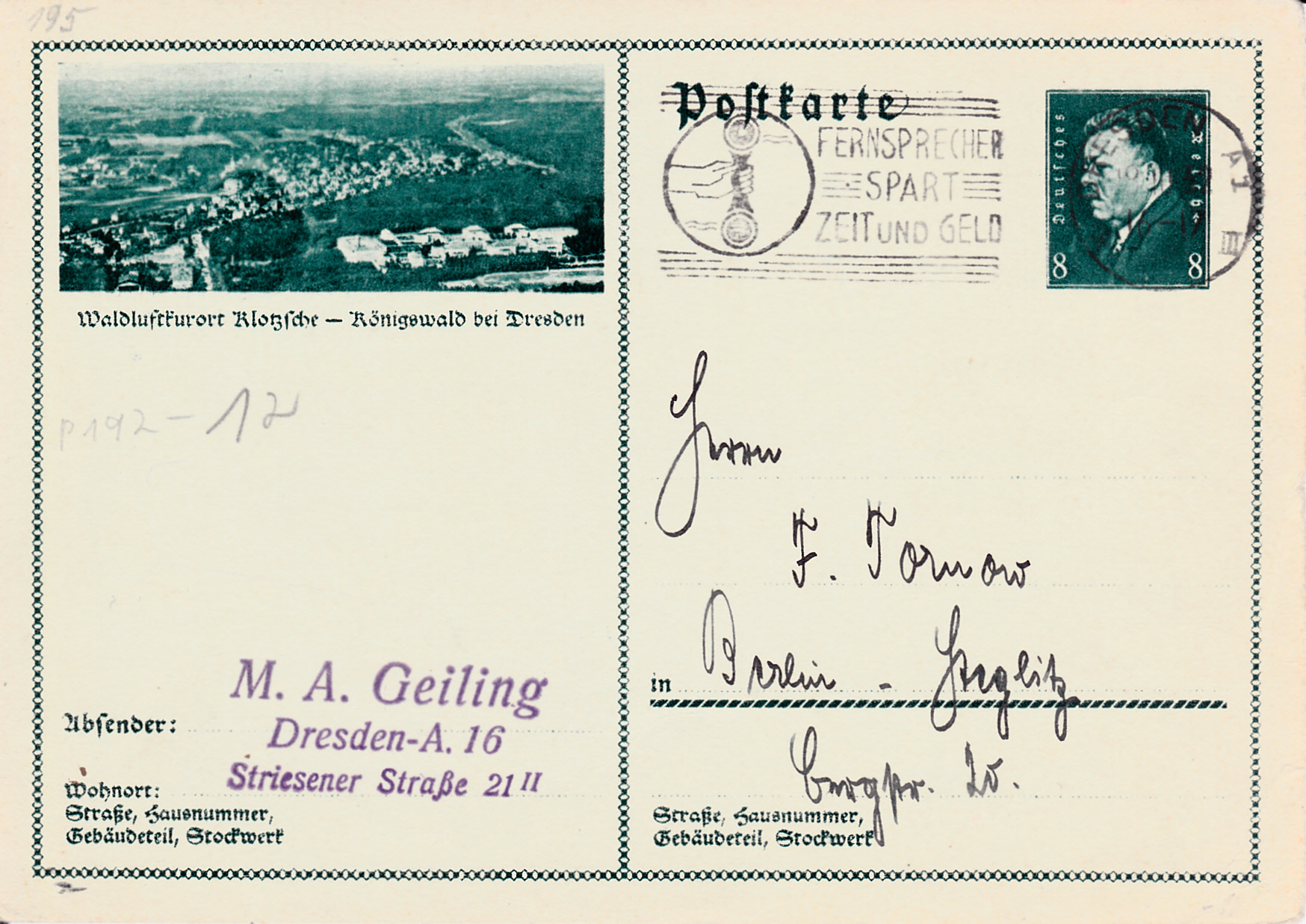 Auch auf dieser Karte (MiNr P 192/13) wird ist Ansicht aus Klotsche abgebildet.