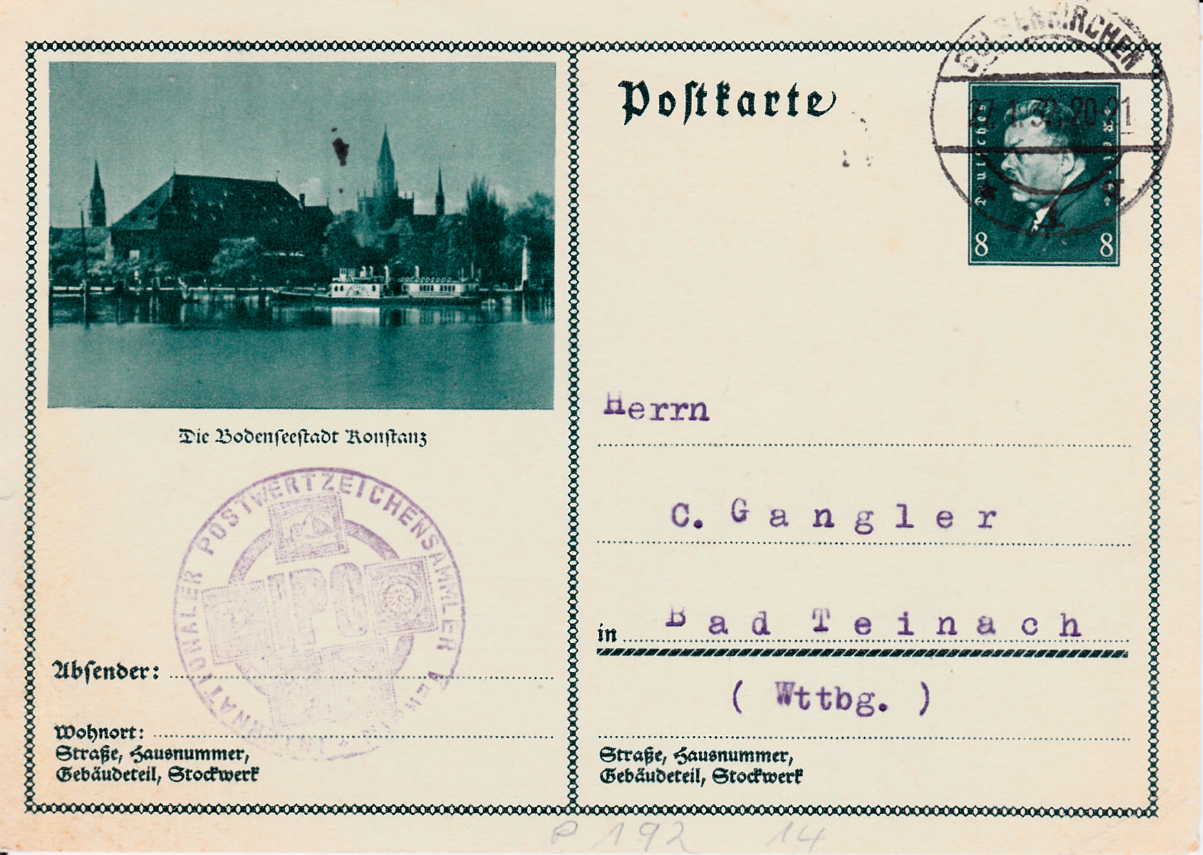 Die nächste Bildpostkarte (MiNr P 292/14) stellt die Bodenseestadt Konstanz vor.
