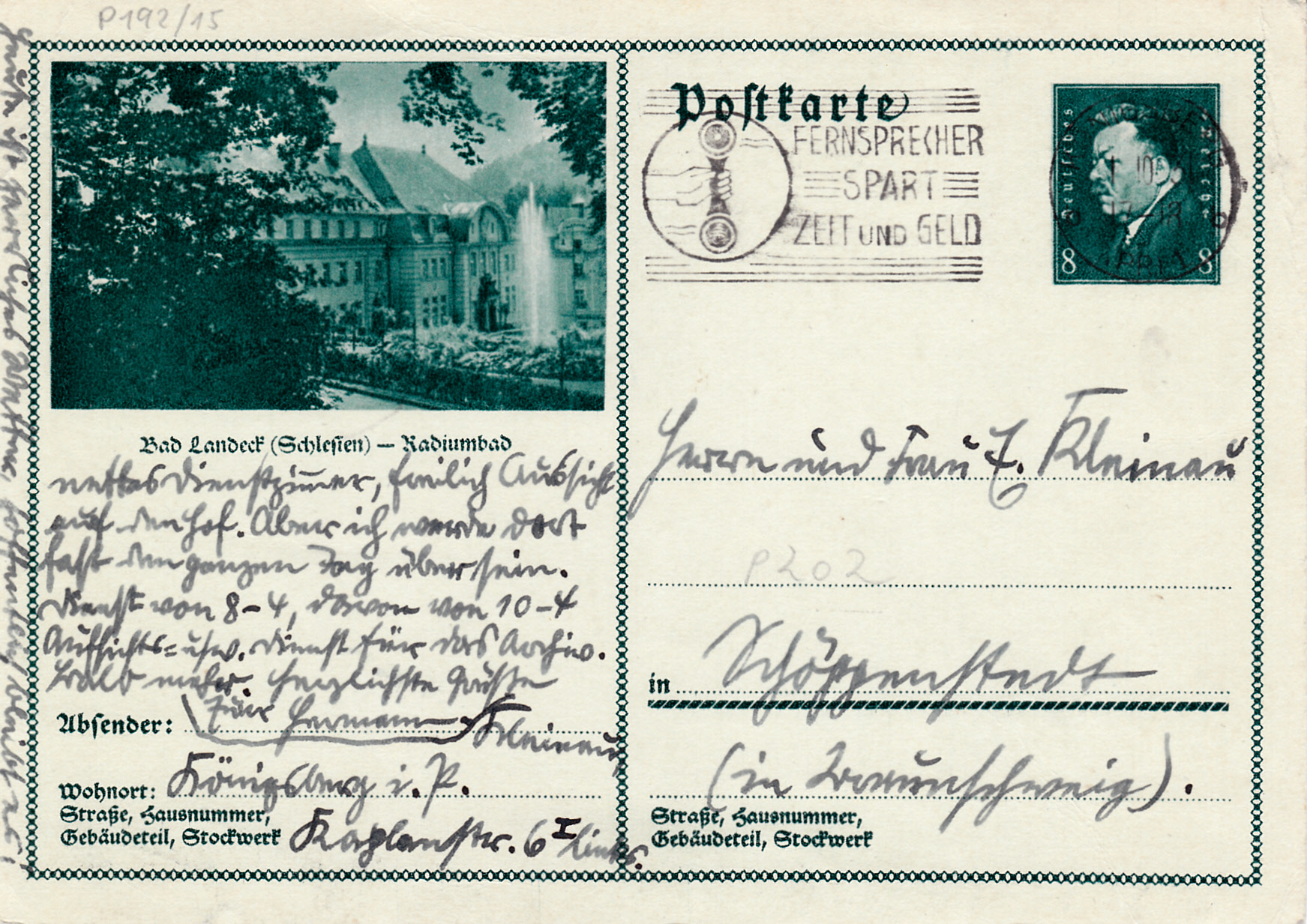 Mit dieser Karte (MiNr P 192/15) mit dem Radiumbad in Bad Landeck (Schlesien) geht es weiter.