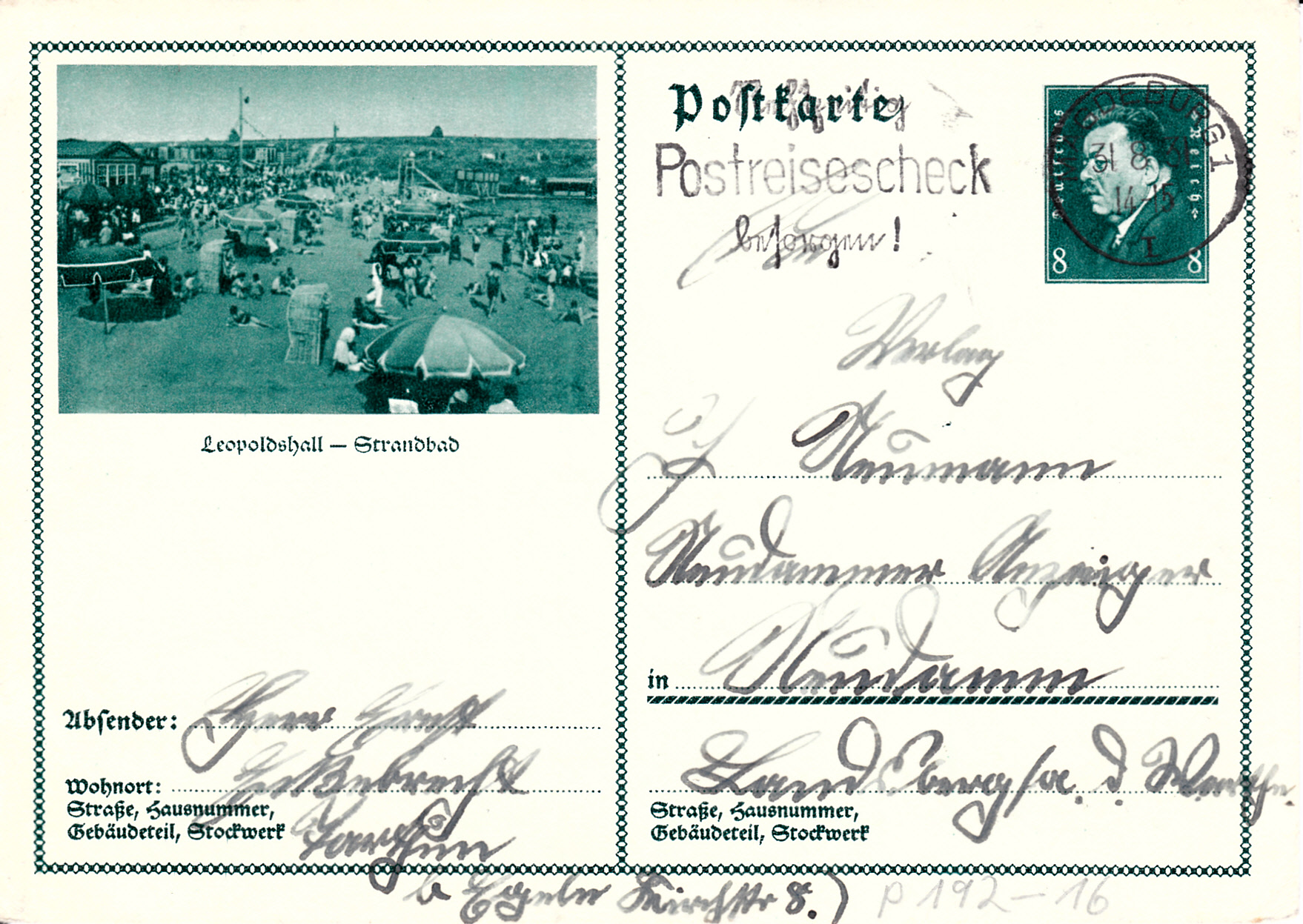 Das Strandbad in Leopoldshall sehen wir auf dieser Karte (MiNr P 192/16).
