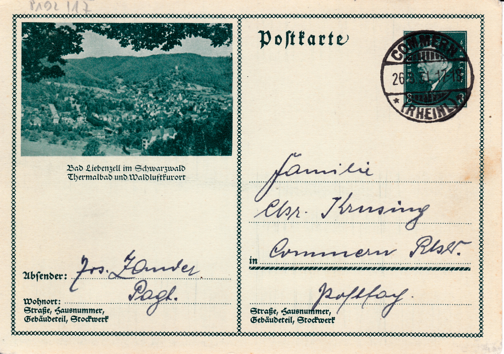 Auf dieser Karte (MiNr P 192/17) wird ein Foto von Bad Liebenzell im Schwarzwald gezeigt.