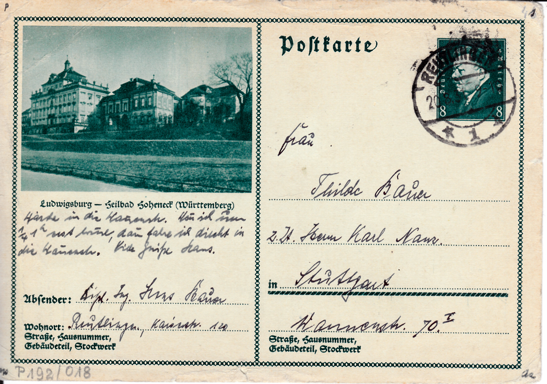 Diese Karte (MiNr P 192/18) bildet eine Ansicht aus Ludwigsburg ab.