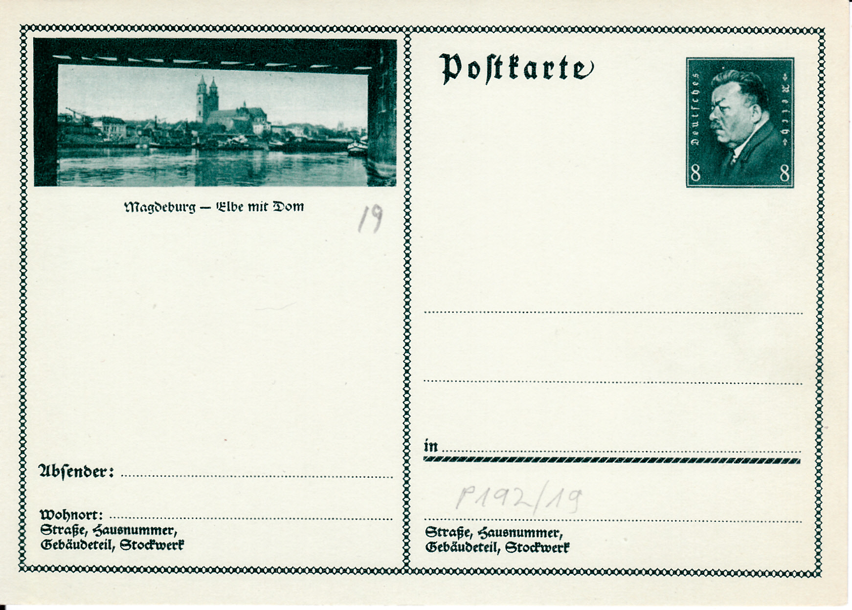 Einen Blick auf Elbe und den Dom zu Magdeburg zeigt uns diese Karte (MiNr P 192/19).