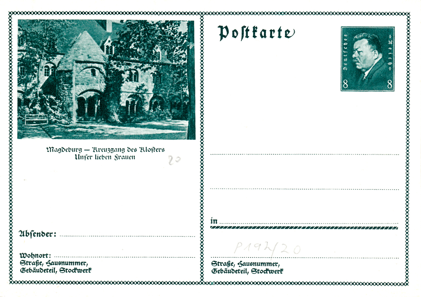 Auch die nächste Postkarte (MiNr P 192/20) zeigt ein Bild aus Magdeburg: den Kreuzgang des Klosters "Unser lieben Frauen"