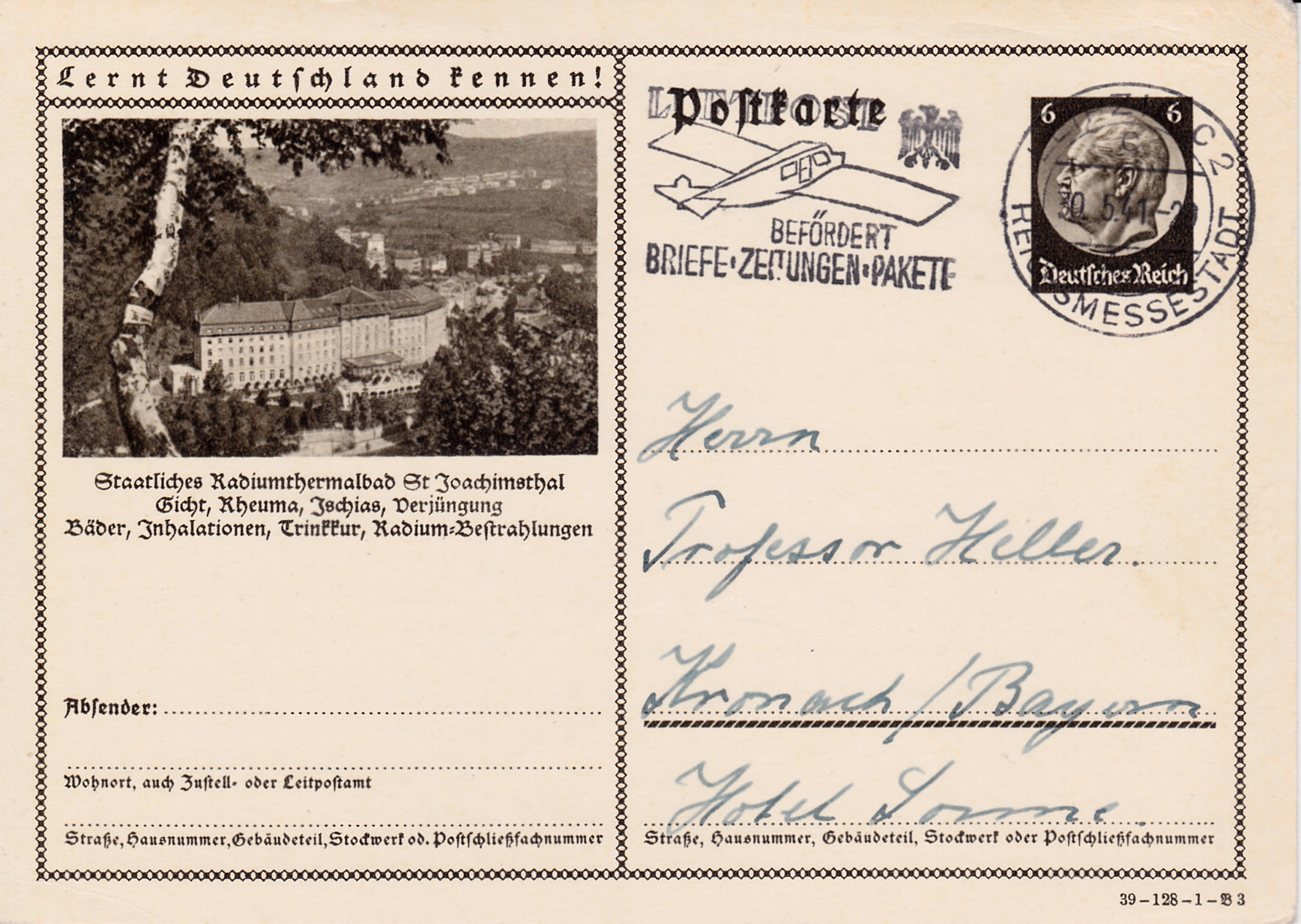 Sankt Joachimsthal zeigt auf dem Foto dieser Karte (Serie 128 Bild 3) das Kurhotel Radium Palace. Sankt Joachimsthal heisst heute Jáchymov und ist eine Stadt in der Karlsbader Region in Tschechien.