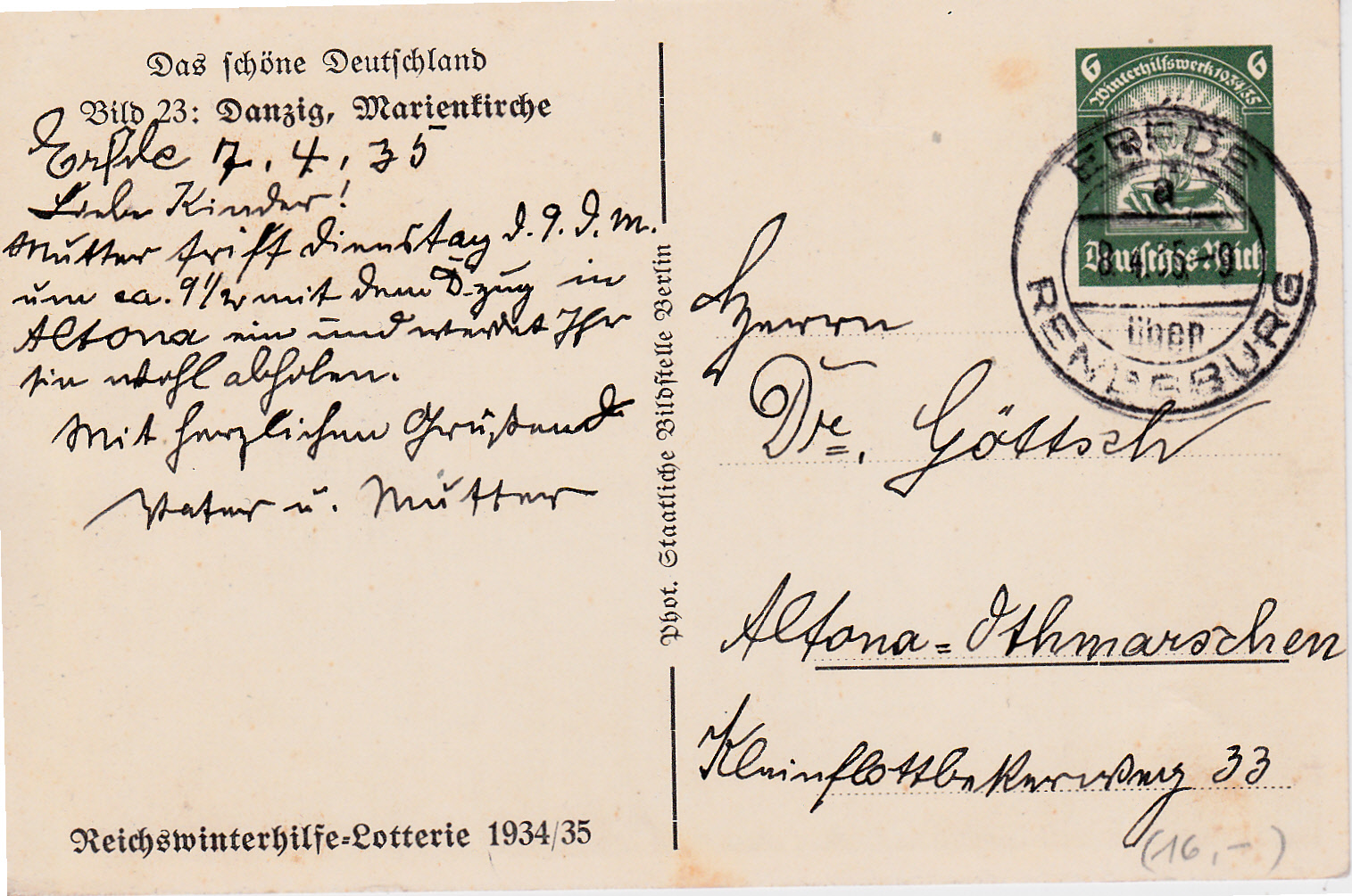 Die Marienkirche in Danzig ist auf dieser Karte (Bild 23) zu sehen.