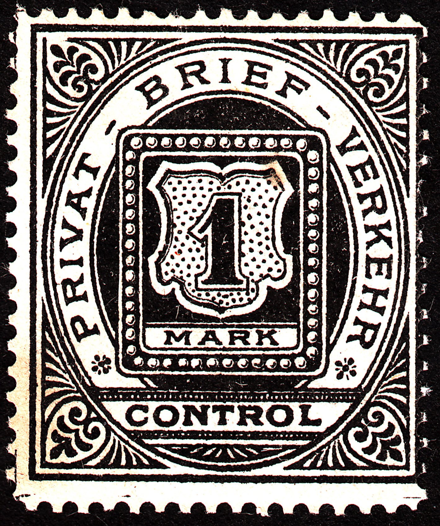 Diese Marke mit der Inschrift "CONTROL" in Schwarz in der Größe 26,5 x 31 mm, gedruckt im Buchdruck, gezähnt 11, wurde 1887 in Köln ausgegeben: