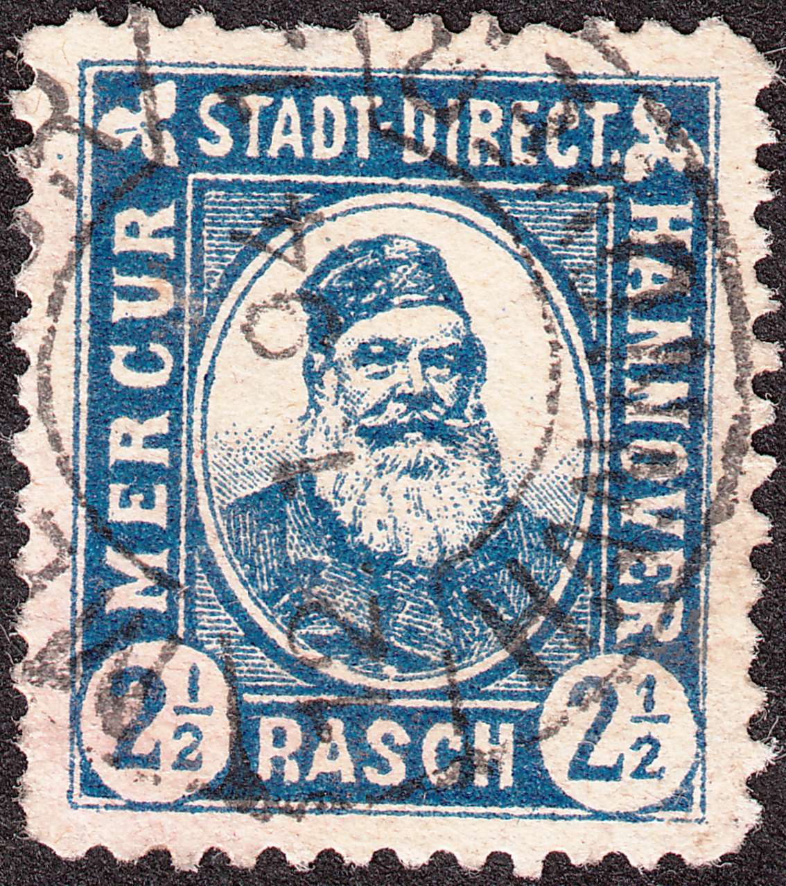 1892 erschien in Hannover dieser Wert zu 2 1/2 Pfennig mit Inschrift "MERCUR STADT-DIRECT HANNOVER RASCH":