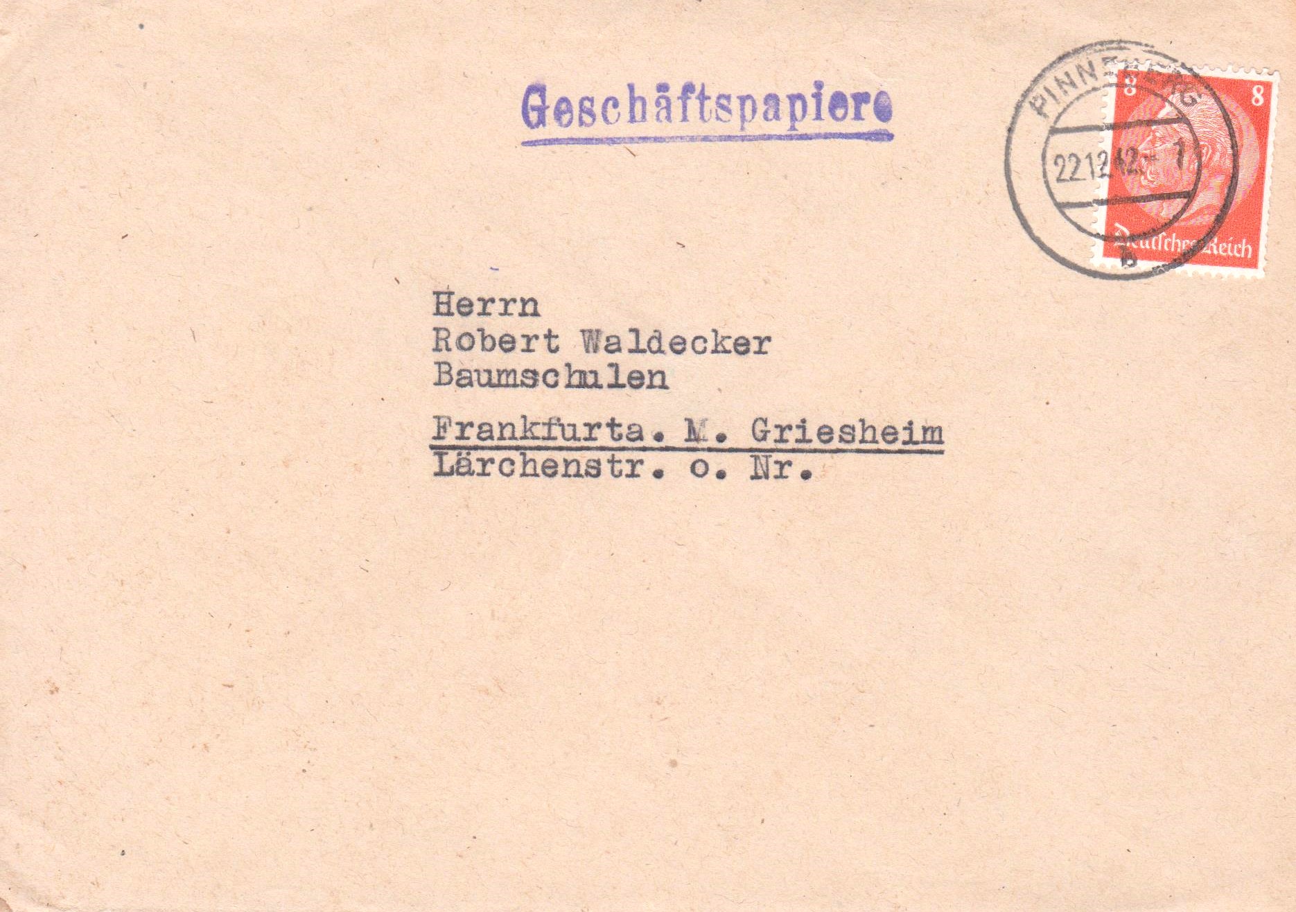 Dieses Exemplar wurde am 22.12.1942 in PINNEBERG aufgegeben: