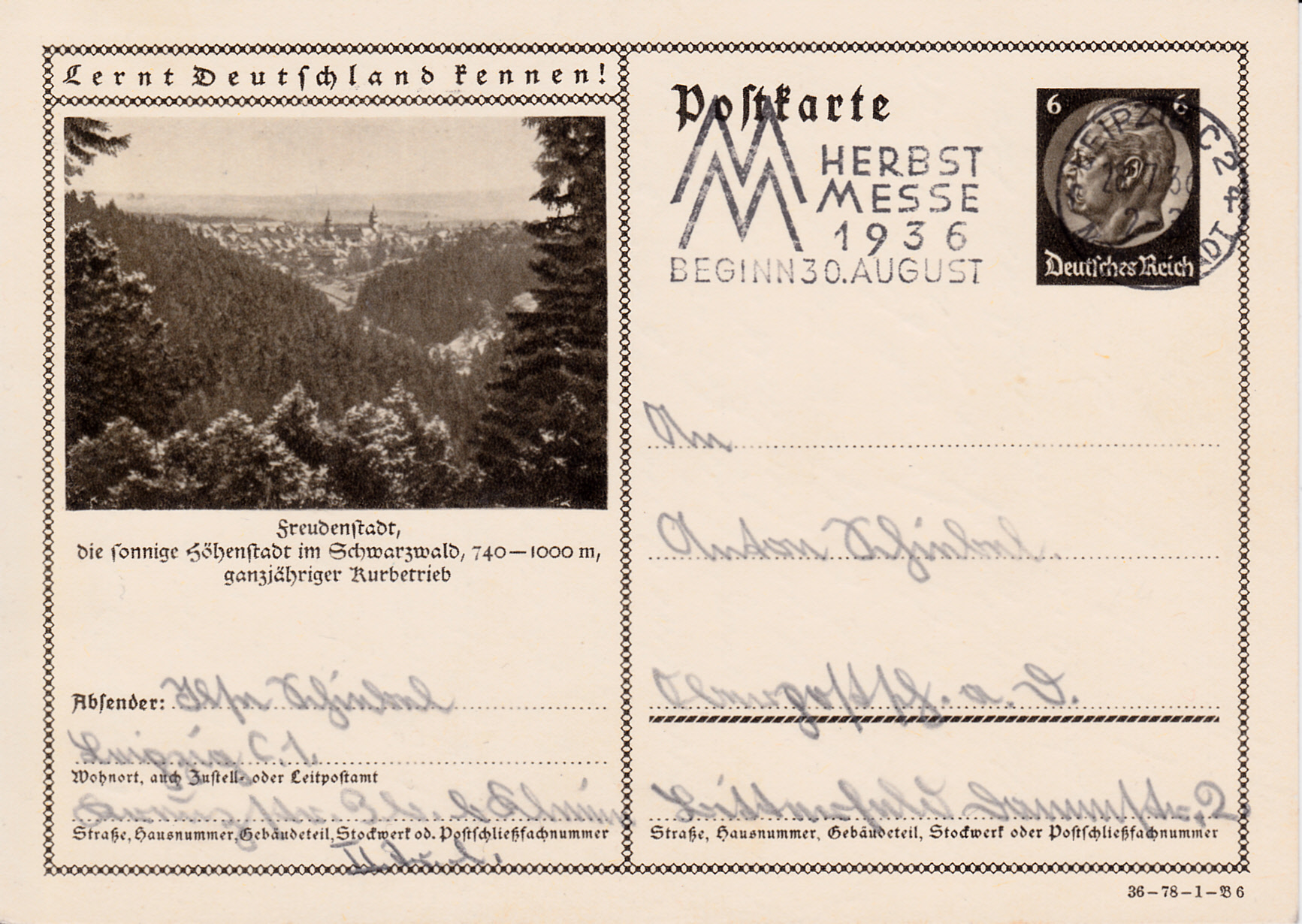 Diese Karte (Serie 78 Bild 6) gestattet uns einen Blick auf Freudenstadt im Schwarzwald.