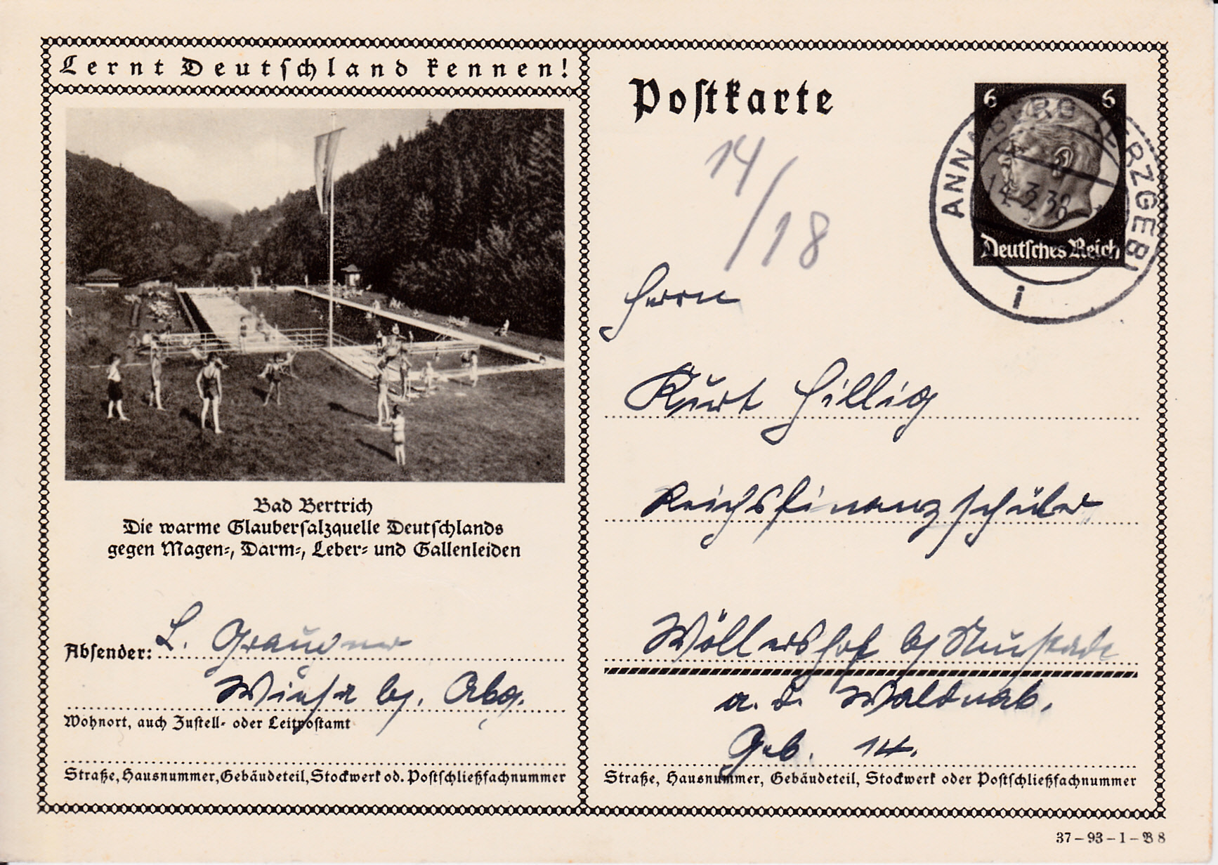 Bad Bertrich macht mit dieser Karte (Serie 93 Bild 7) auf seine warme Glaubersalzquelle aufmerksam.