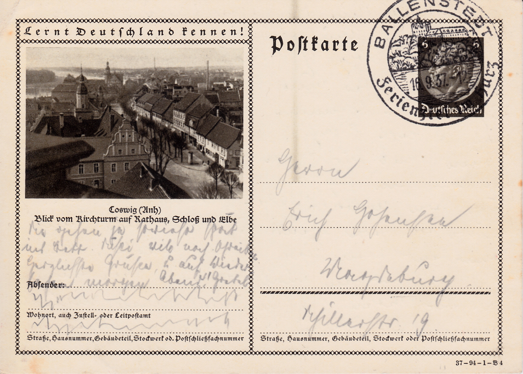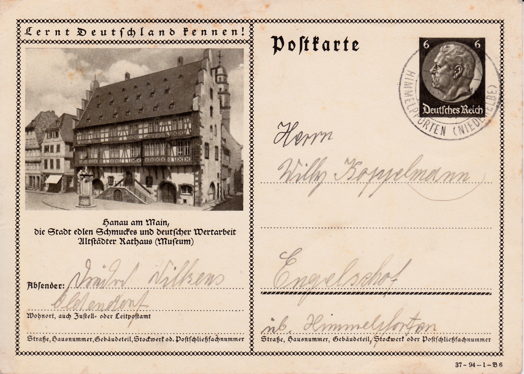 Das Foto mit dem Rathaus in Hanau ist auch wieder im Jahre 1937 auf dieser Karte (Serie 94 Bild 6) vertreten.