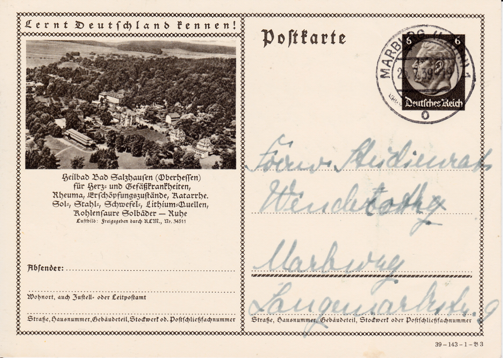 Bad Salzhausen wiederholt auf der Karte 1939 (Serie 143 Bild 3) das Luftbild aus dem Vorjahr.
