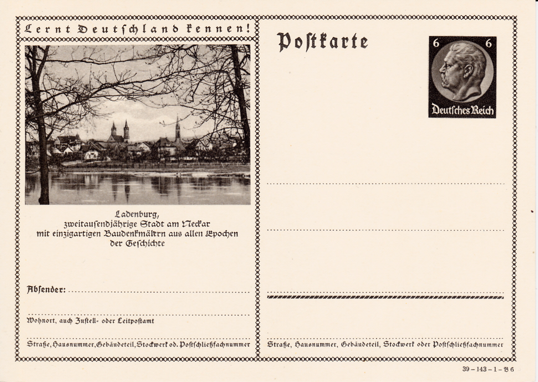 Ladenburg am Neckar verwendet auf dieser Karte (Serie 143 Bild 6) das Bild aus dem Vorjahr.