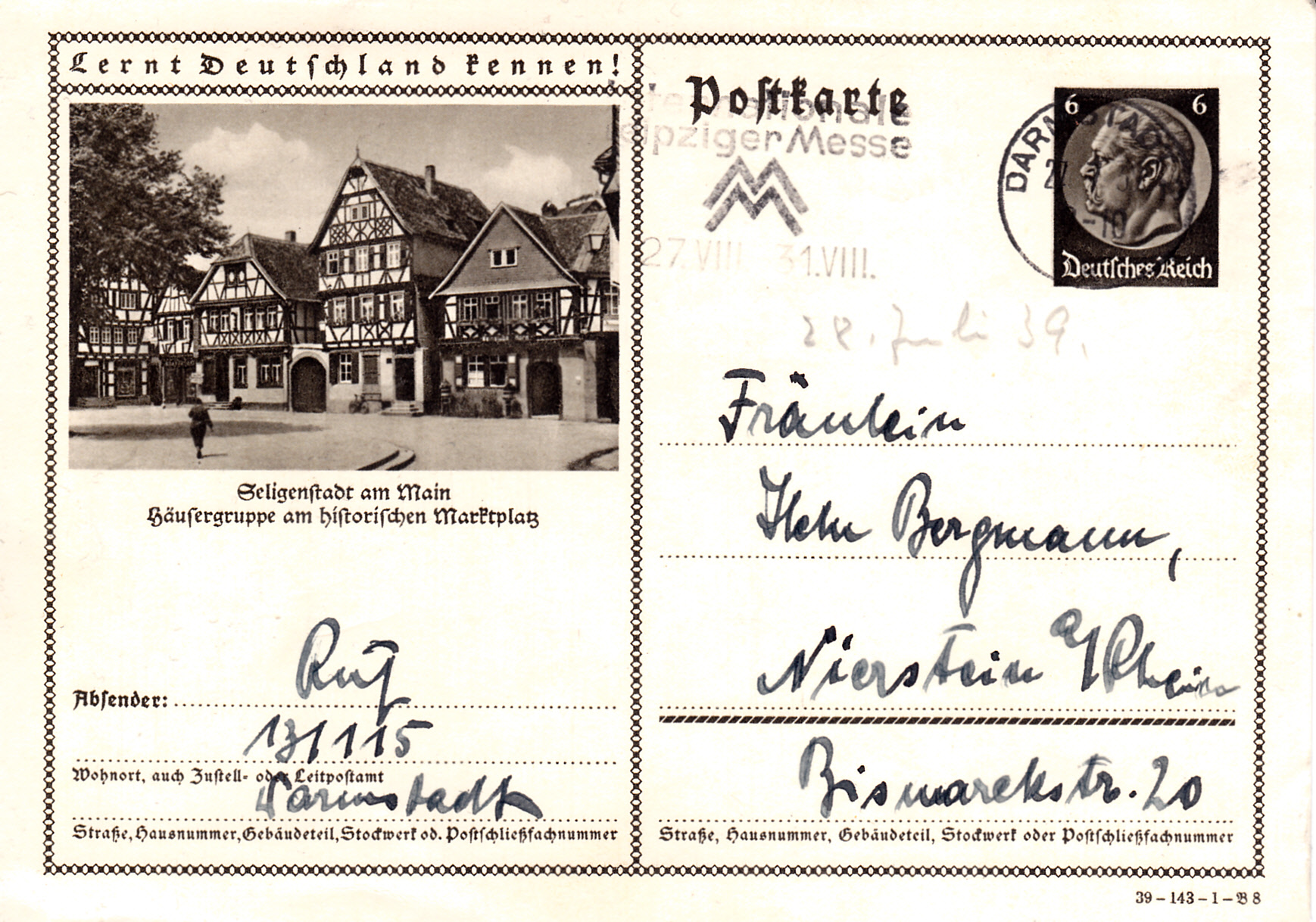 Seligenstadt zeigt auf diese Karte (Serie 143 Bild 8) ein Foto mit dem Marktplatz.
