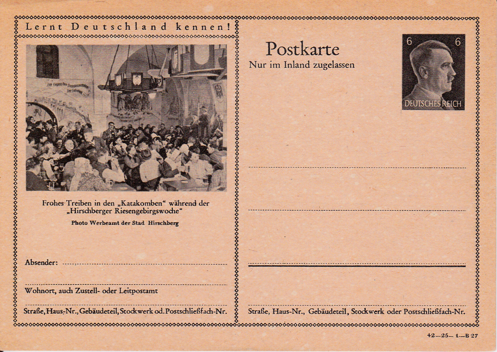 Auf dieser Karte (Serie 25 Bild 25) wirbt Hirschberg im Riesengebirge für die "Hirschberger Riesengebirgswoche".