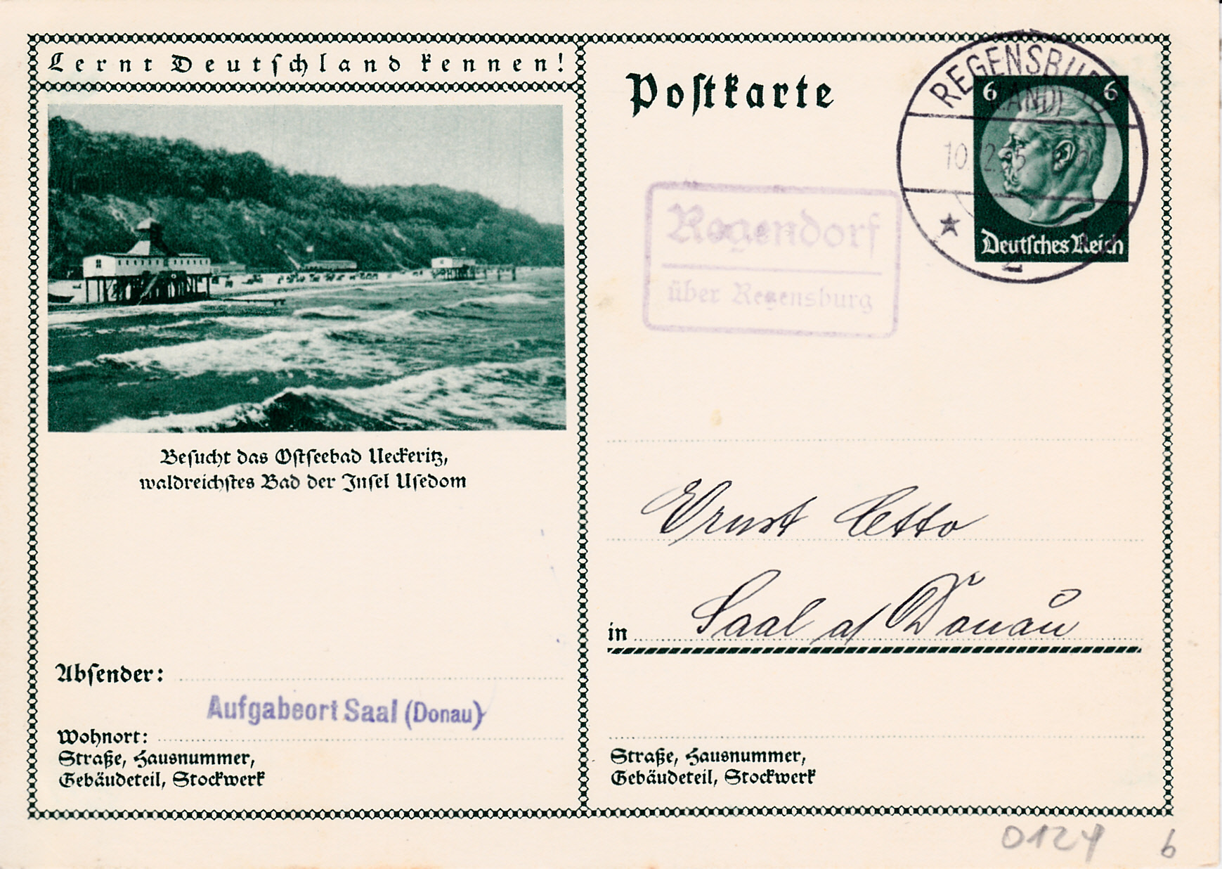 Diese Karte (P 232/124) zeigt das gleiche Bild mit dem Strand im Ostseebad Ückeritz auf der Insel Usedom das schon auf der Karte (P 221/76) zu sehen war.