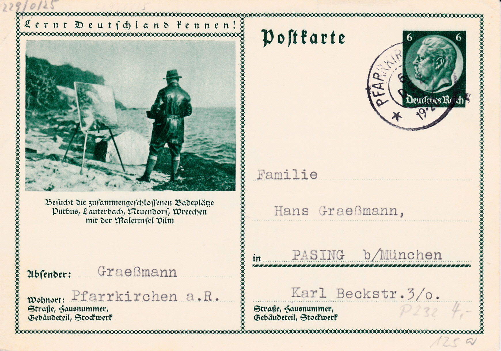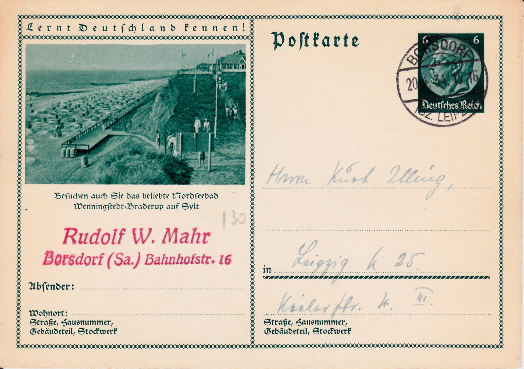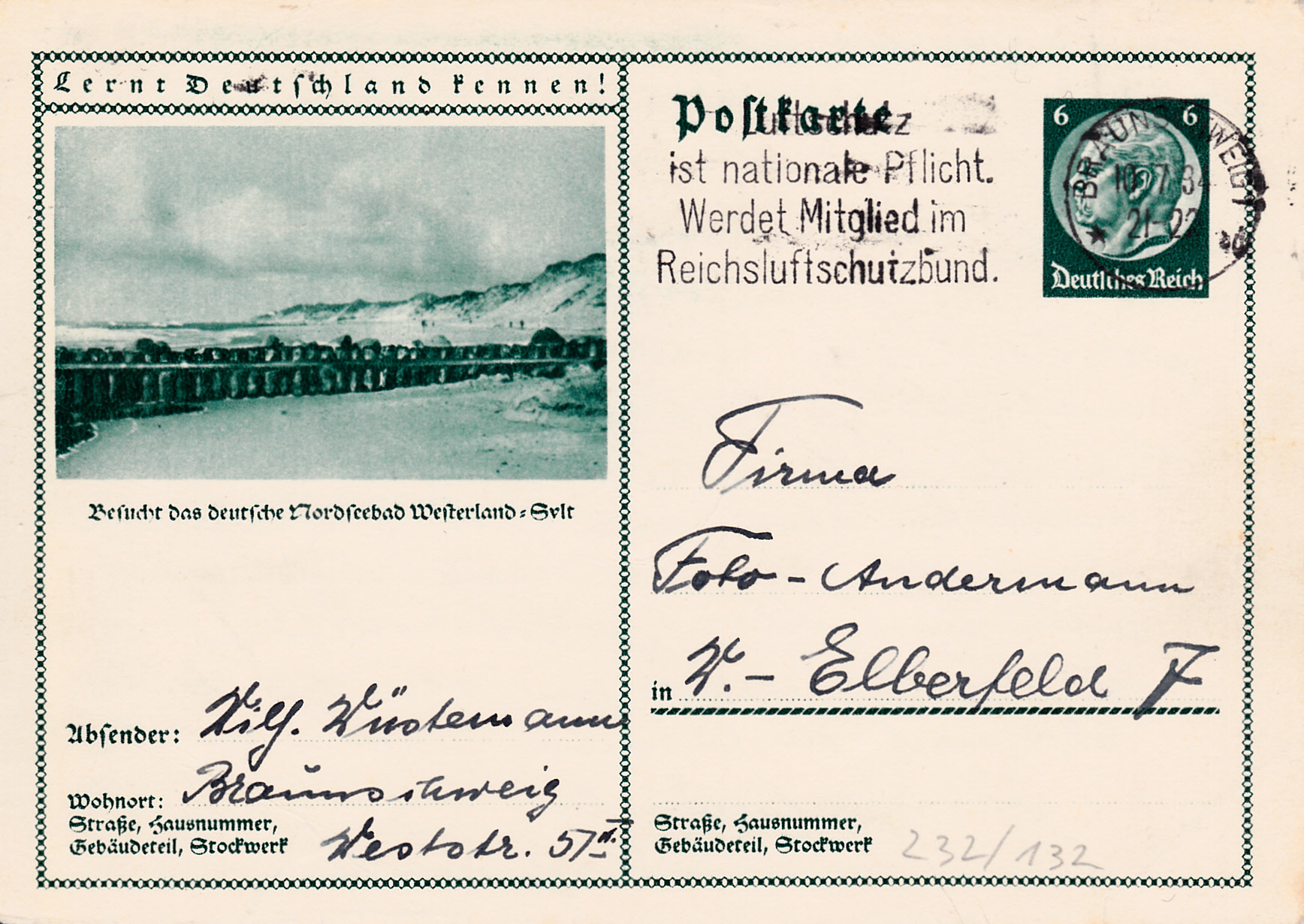 Auf dieser Karte (MiNr P 232/132) wird für den Besuch des No5rdseebades Westerland auf de Insel Sylt geworben.
