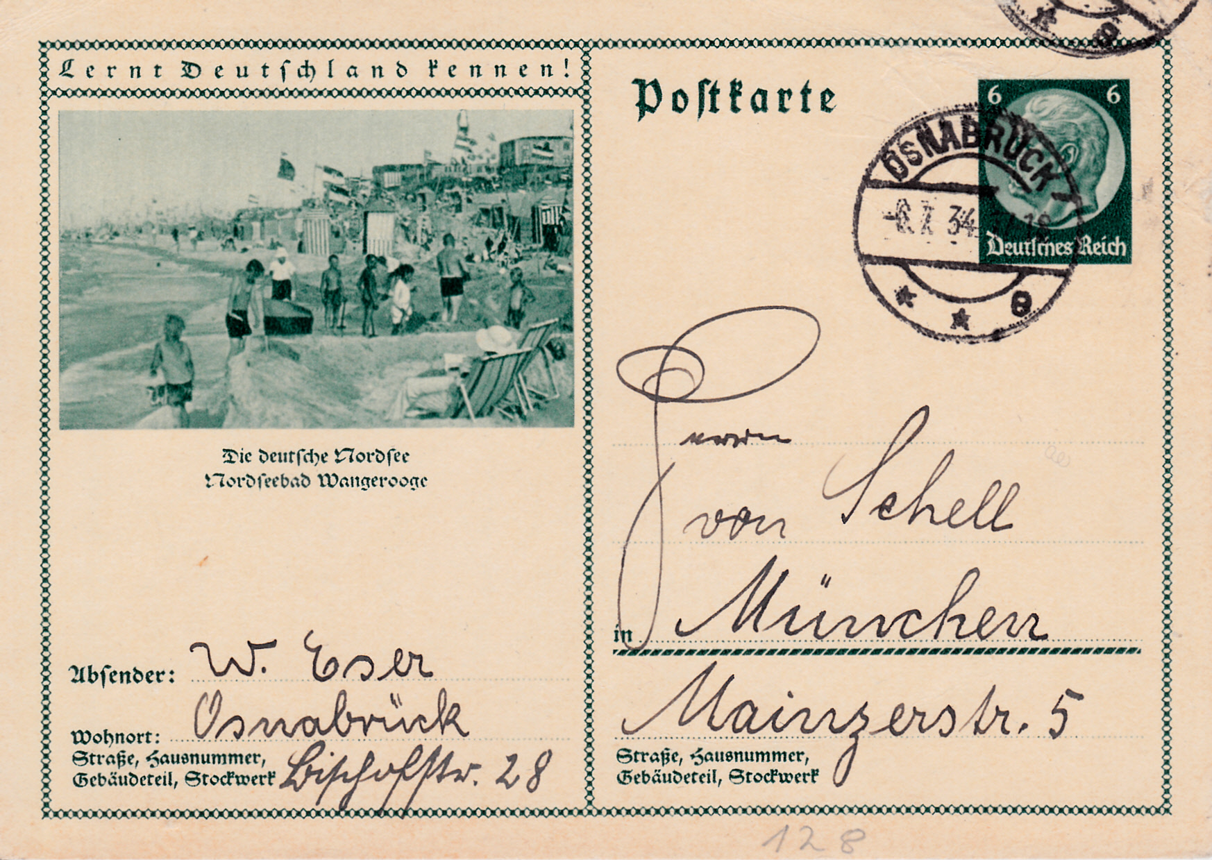 Der Nordseestrand von Wangerooge zeiogt uns diese Karte (MiNr P 232/128).