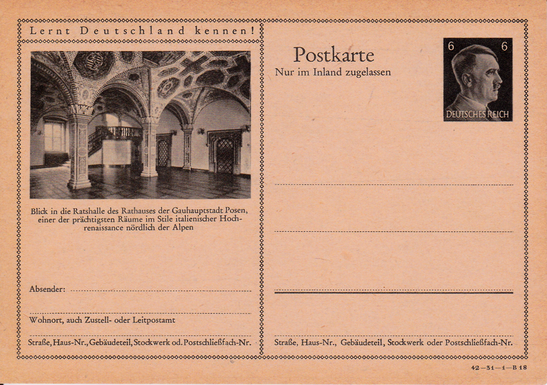Die nächste Karte Karte (Serie 31 Bild 18) zeigt einen Blick in das Innere des Rathauses in Posen. Zu sehen ist die Ratshalle.