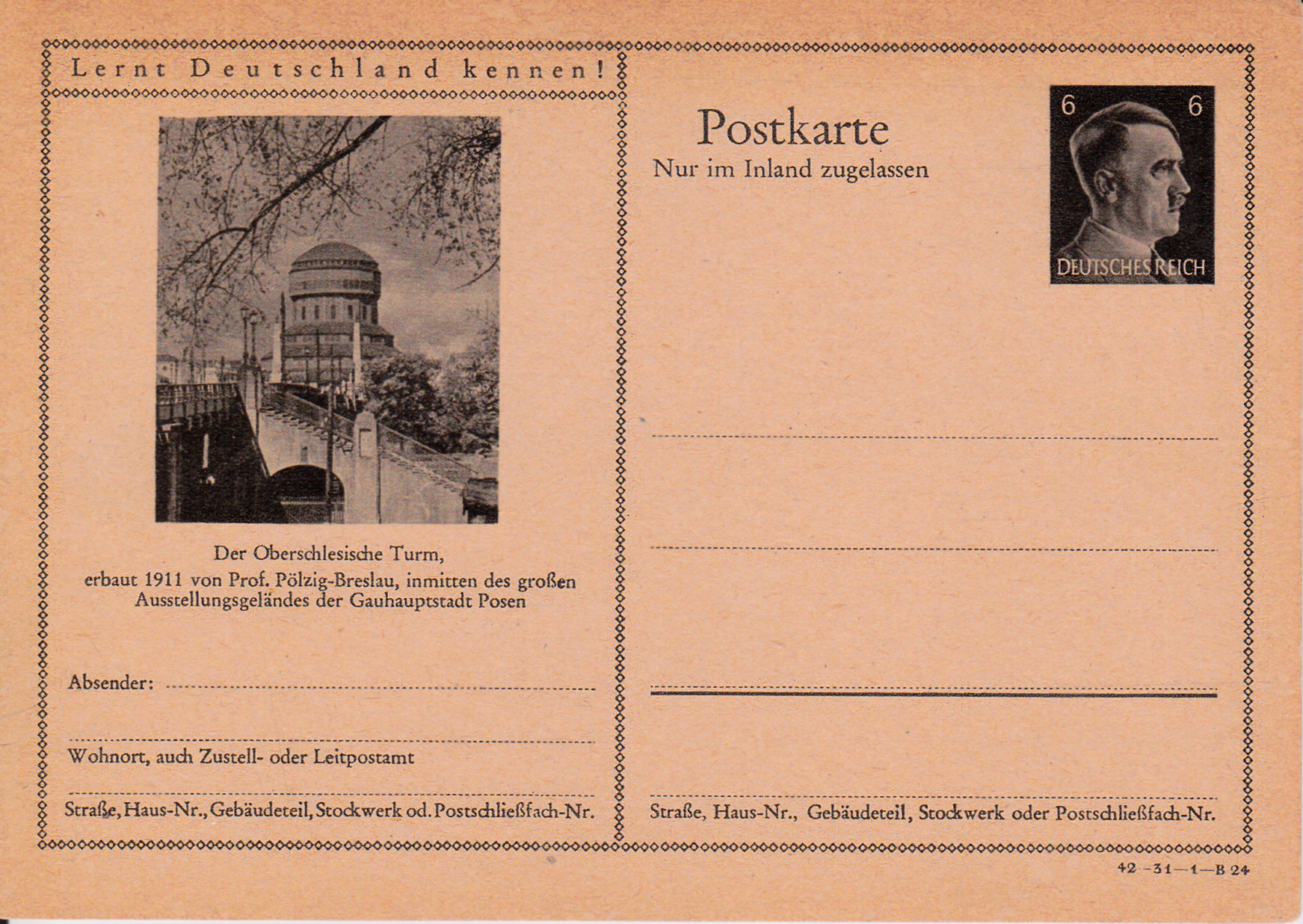 Die nächste Karte (Serie 31 Bild 22), die ich zeigen kann, bildet den im Jahre 1911 nach dem Entwurf von Hans Poelzig erbauten Oberschlesischen Turm ab.