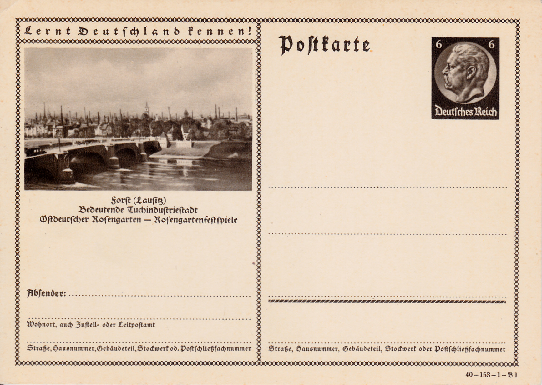 Auf dieser Karte (Serie 153 Bild 1) sehen wir einen Blick auf die Stadt Forst (Lausitz).