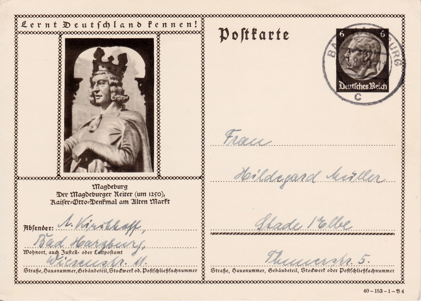 Auch das Foto auf dieser Karte (Serie 153 Bild 4) mit einem Detail des "Kaiser-Otto-Denkmals" (Magdeburger Reiter) ist schon mehrfach gezeigt worden.