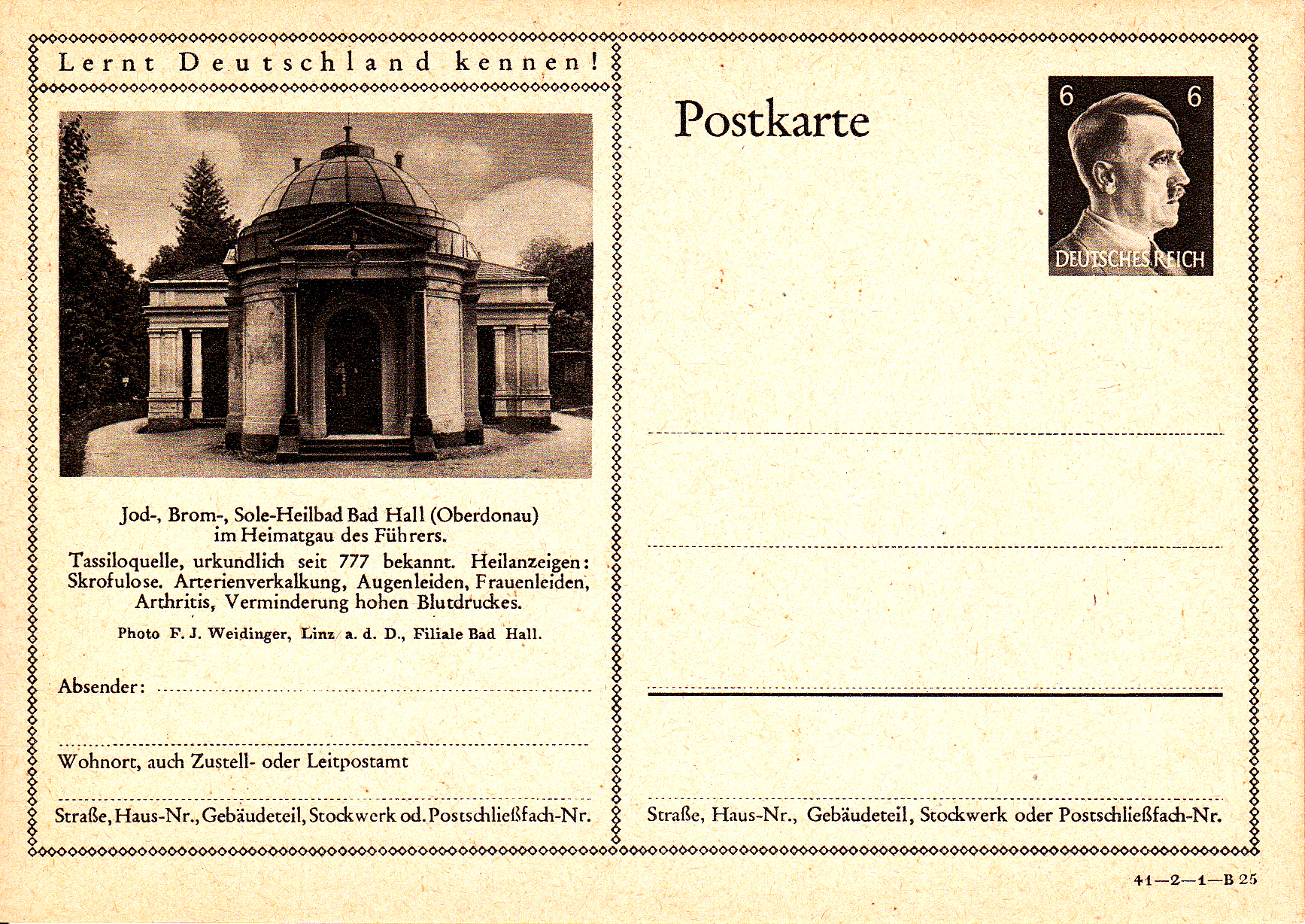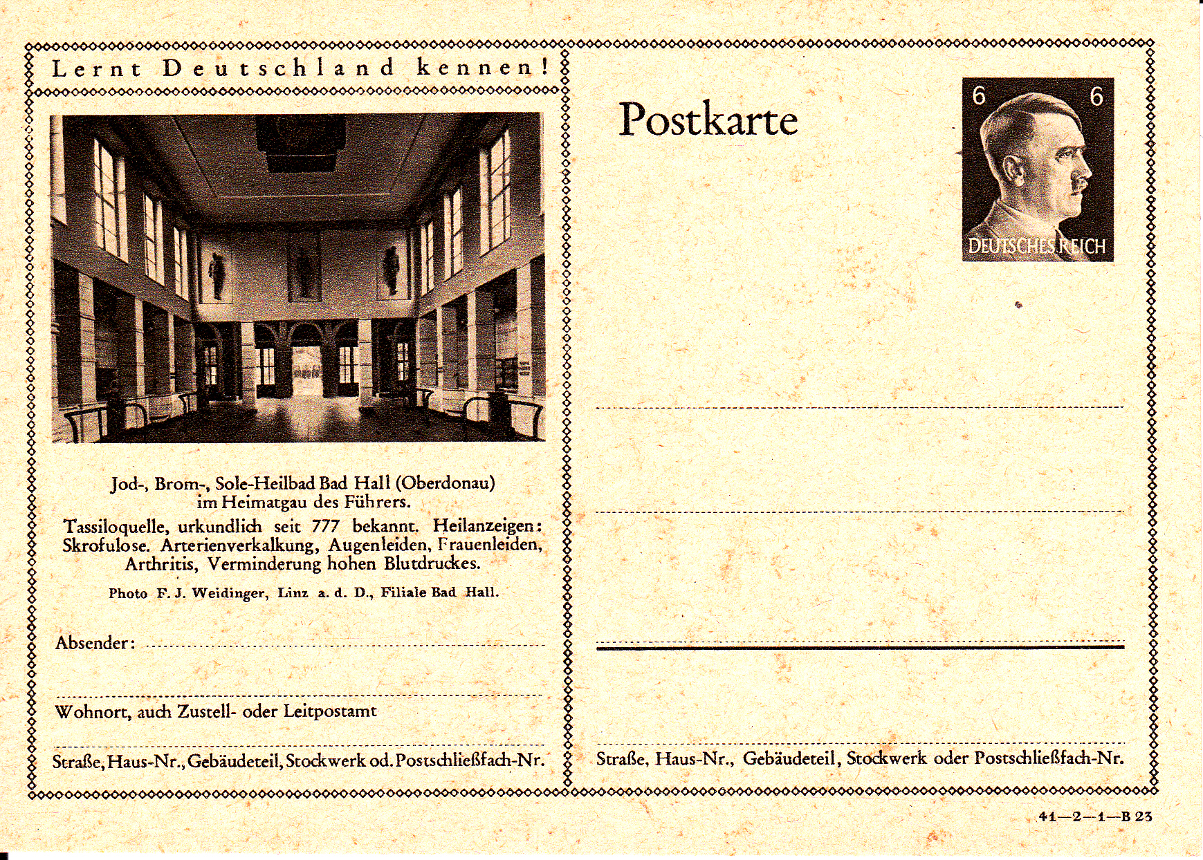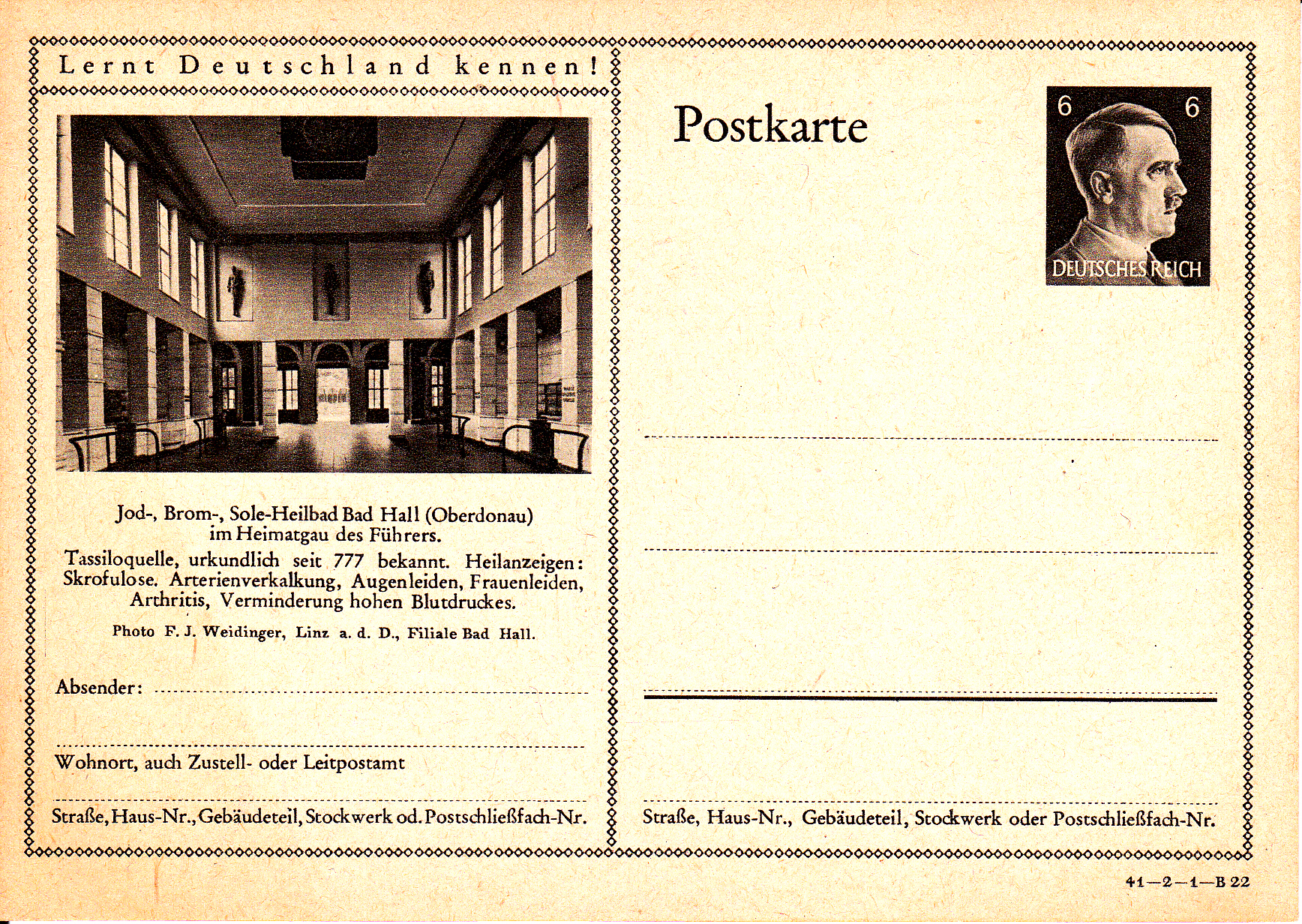 Bad Hall macht mit dieser Karte (Serie 2 Bild 22) Werbung für seine "Tassiloquelle", die seit ältester Zeit als Salzquelle bekannt ist. Das Wasser der Quelle wurde zur Salzgewinnung verwendet und dient heute noch der Behandlung von Hautkrankheiten.