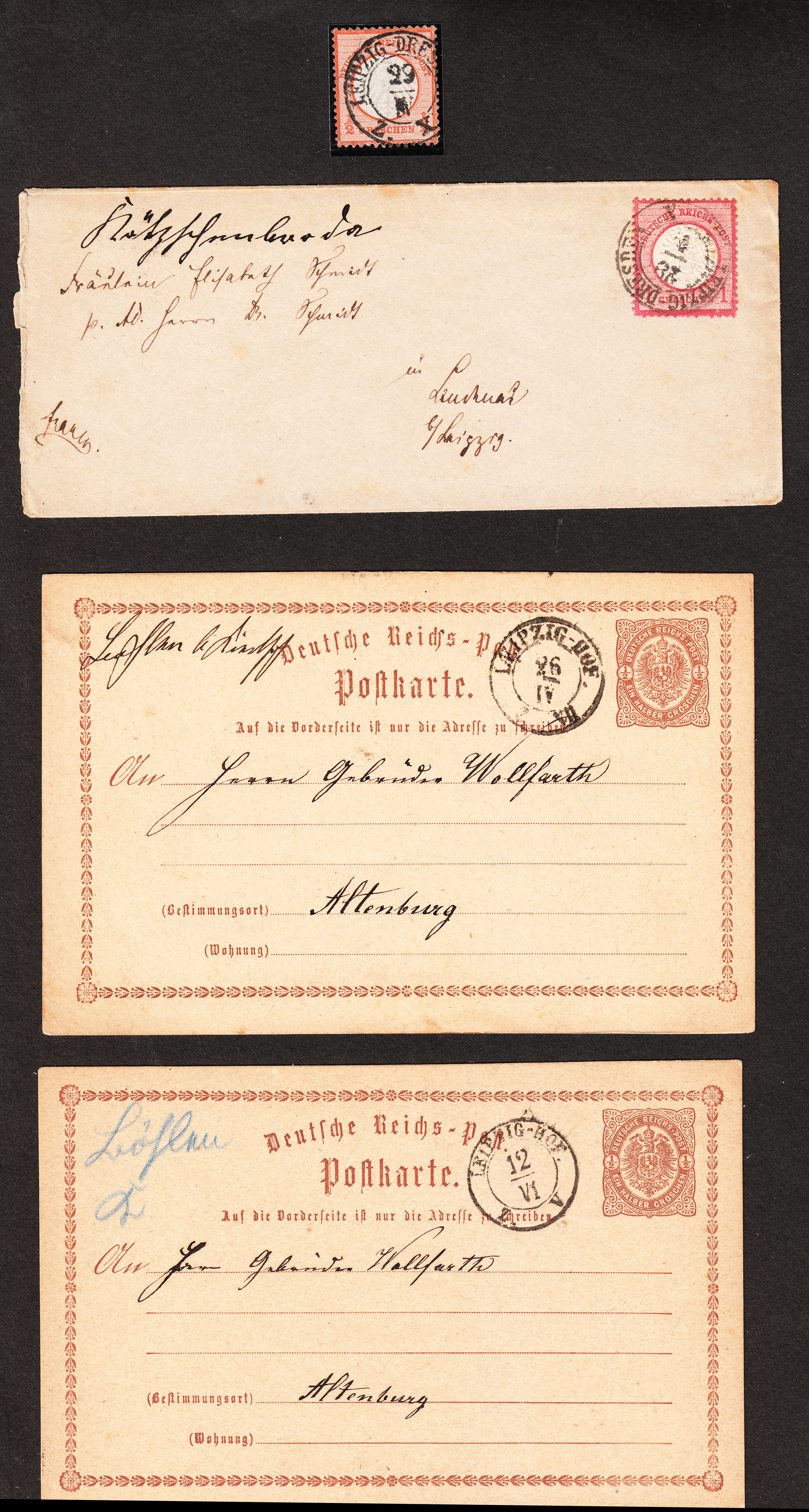Wie immer nach Abschluß eines fiktiven Sammeljahres hier ein Ausschnitt aus der Sammlung. Für heute habe ich die vier sächsischen Bahnpoststempel ausgewählt, die zusammen ein Albumblatt gut füllen werden: