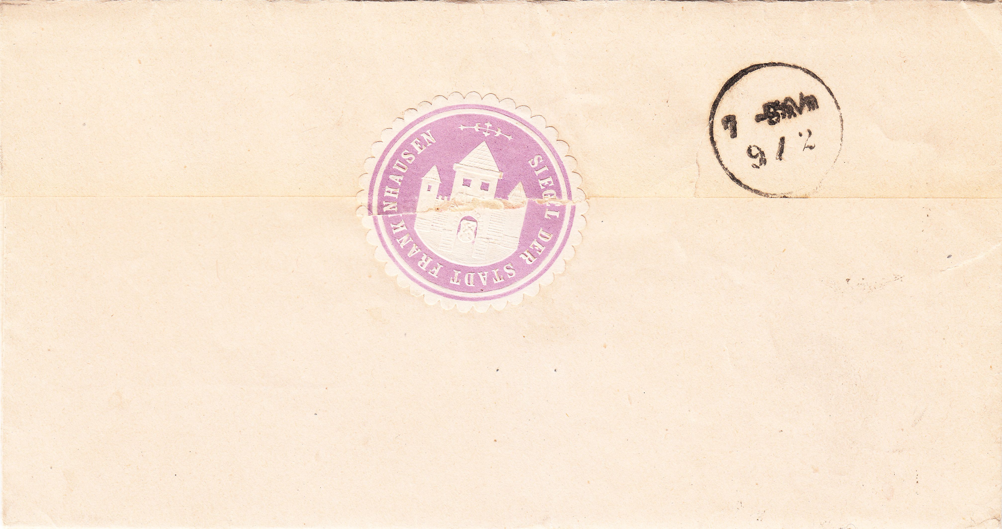 Bei dem Kreisstempel FRANKENHAUSEN handelt es sich um einen Übergangsstempel in Sonderform der OPD Erfurt nach Michel Type II/8/1 EA (=K1 Antiquaschrift).